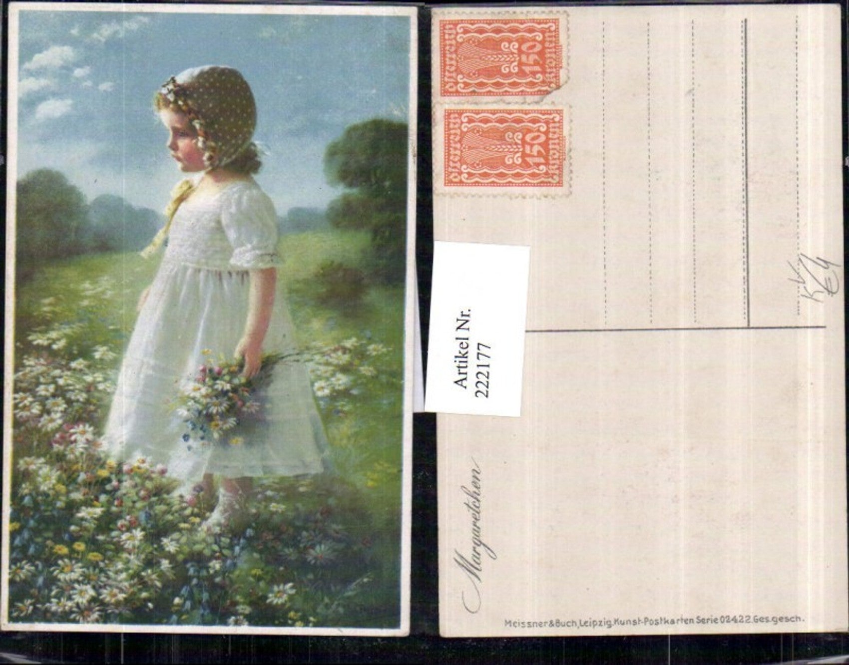 222177,Künstler AK Meissner & Buch 02422 Margaretchen Mädchen m. Haube b. Blumen pflücken