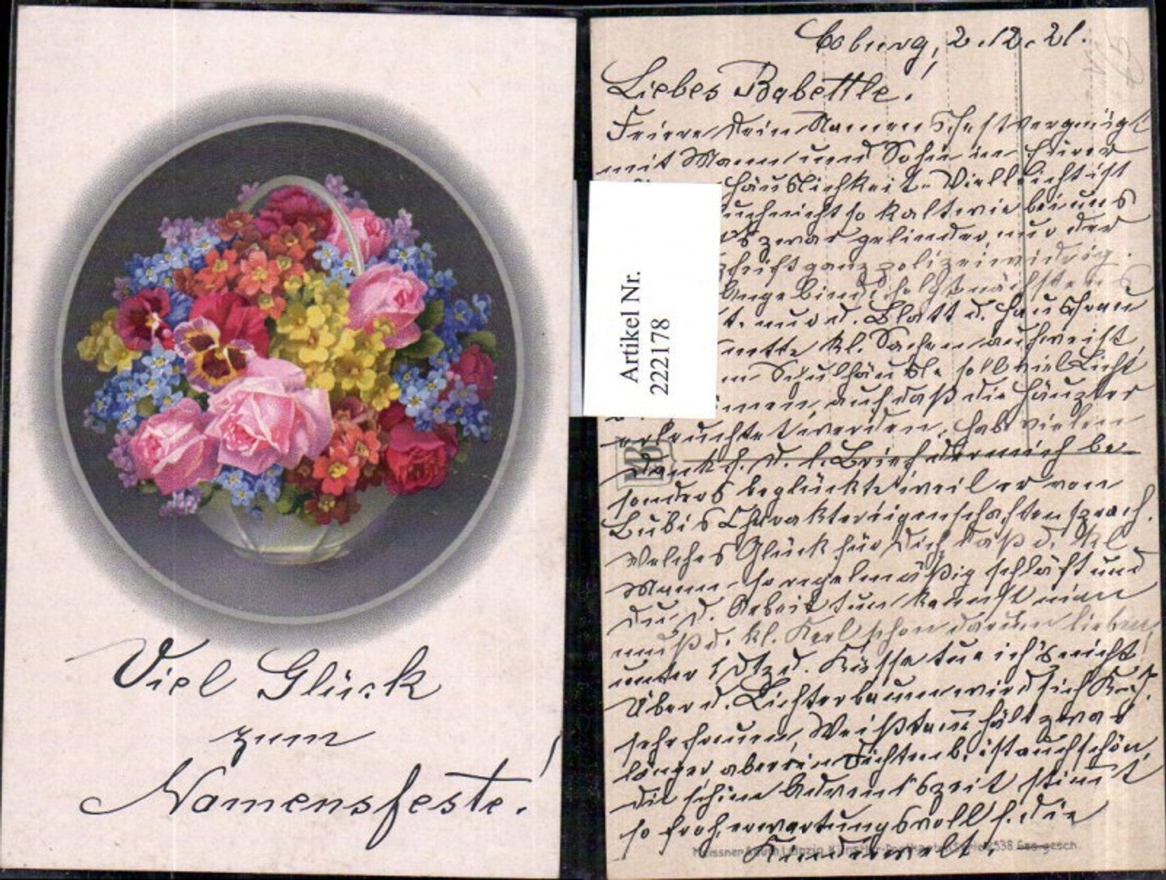 222178,Künstler AK Meissner & Buch 2538 Korb m. Blumen Rosen Stiefmütterchen Vergissmeinnicht Primeln