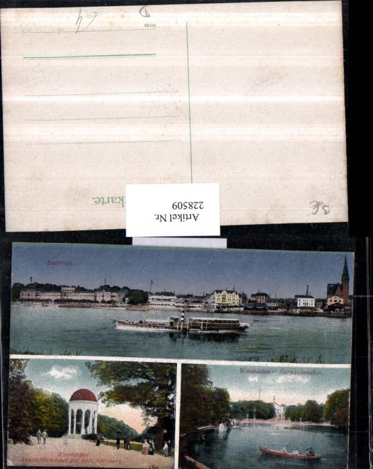 228509,Wiesbaden Kursaalweiher Biebrich Dampfer Tempel auf d. Neroberg Mehrbildkarte