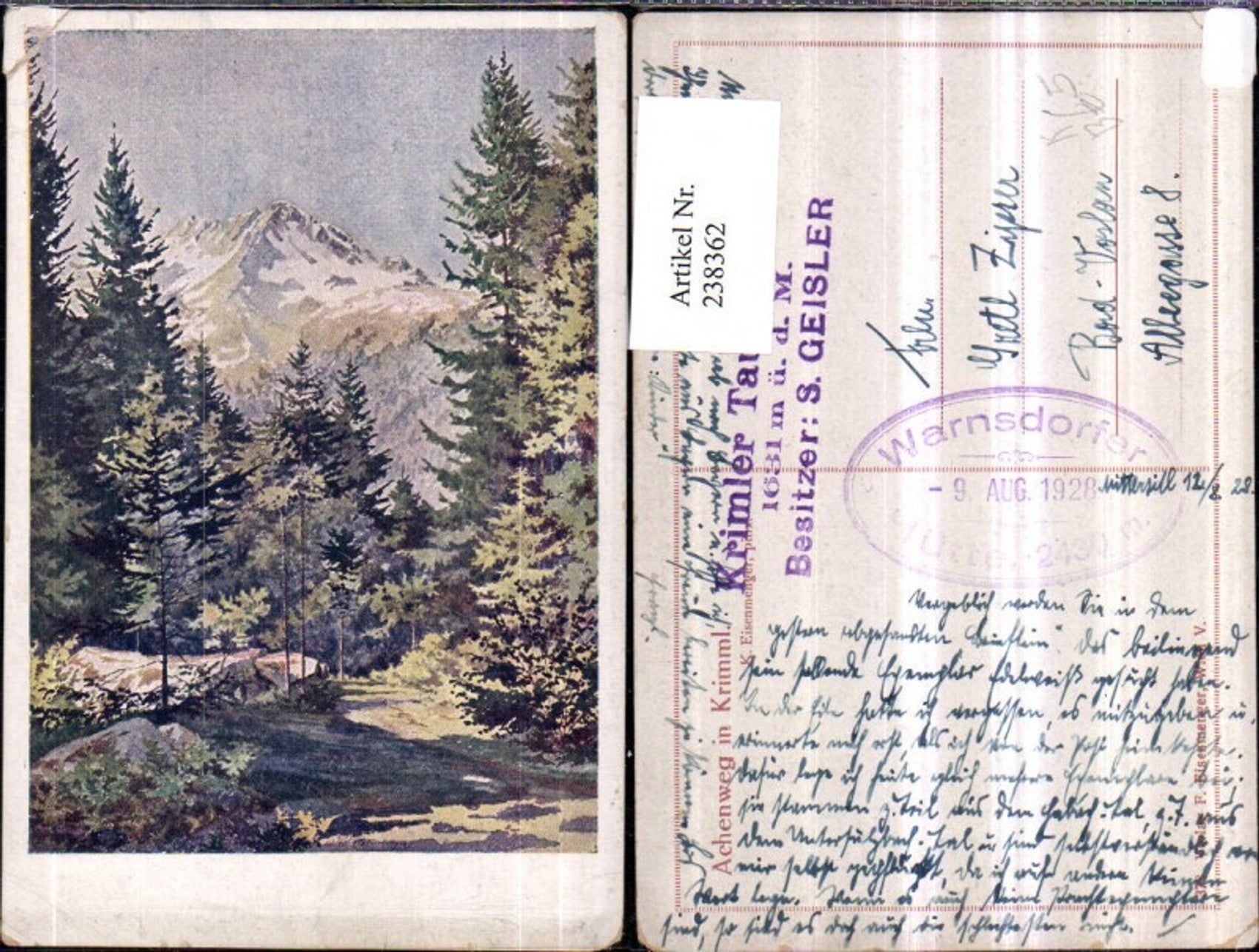 238362,Künstler AK E. Eisenmenger Achenweg in Krimml Partie