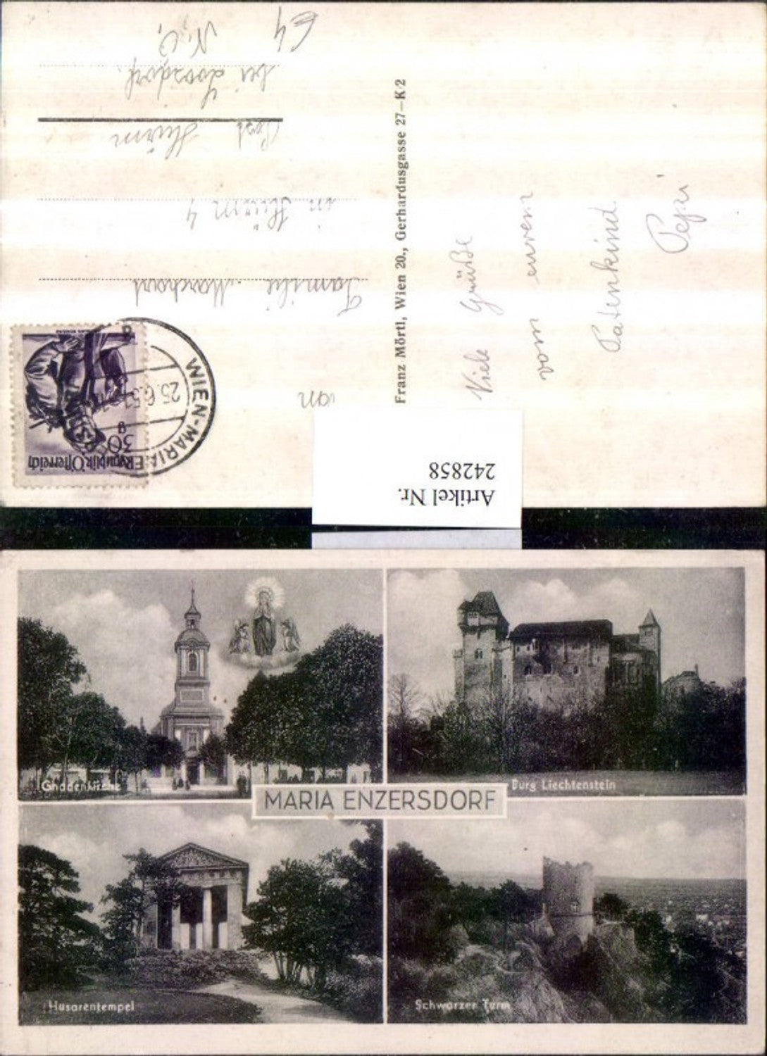 242858,Maria Enzersdorf Kirche Gnadenbild Burg Liechtenstein Schwarzer Turm u. Husarentempel
