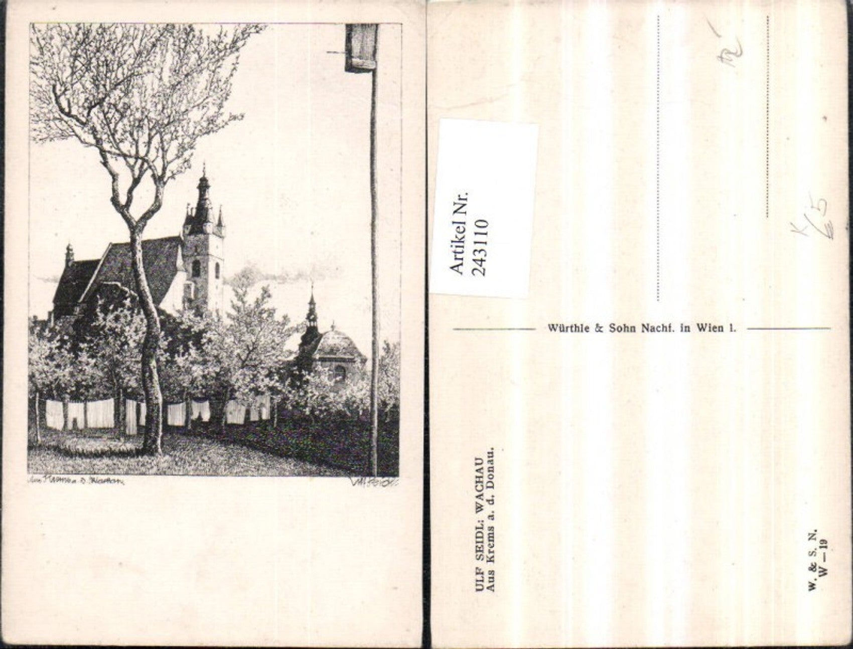 243110,Künstler AK Ulf Seidl Wachau Krems an d. Donau Ansicht Kirche