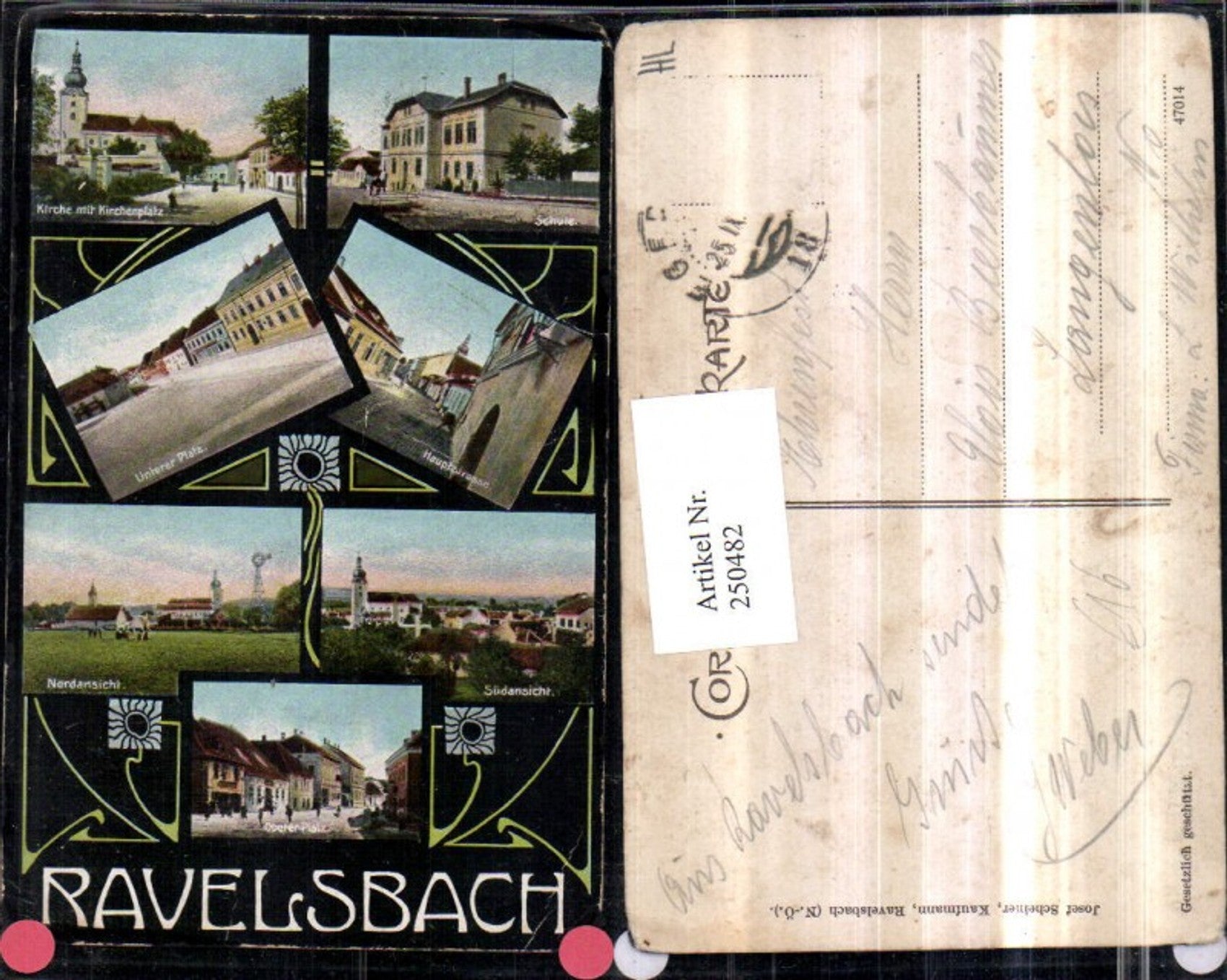 250482,Ravelsbach Totale Oberer u. Unterer Platz Hauptstraße Schule Kirche m. Kirchenplatz Mehrbildkarte
