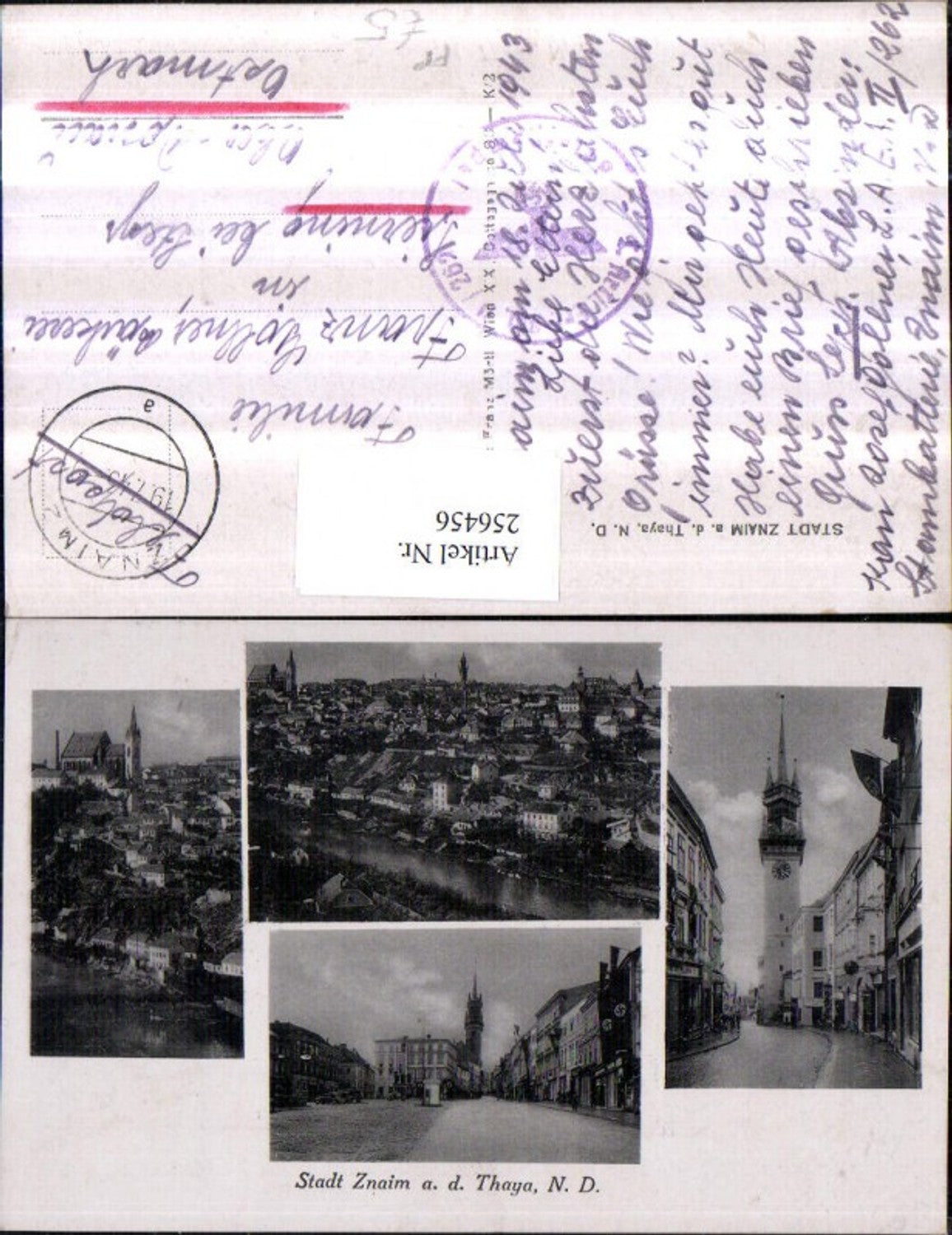 256456,Znaim an d. Thaya Znojmo Totale Kirche Straßenansicht Rathaus Mehrbildkarte Feldpost Artillerie Abteilung 2/262
