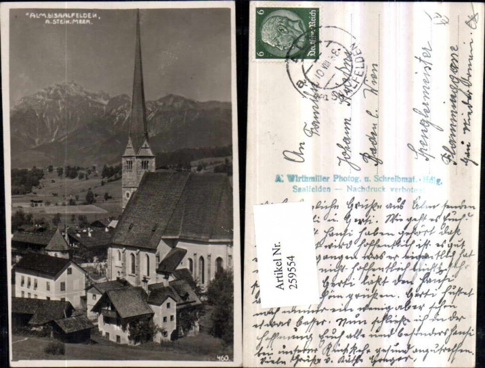259554,Alm b. Saalfelden am Steinernen Meer Kirche Bergkulisse