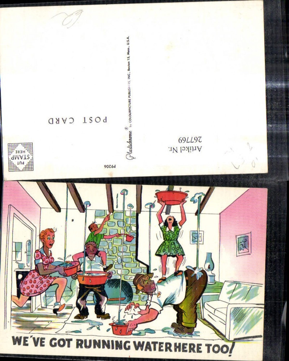 267769,Künstler Ak Wasserrohrbruch Leute versuchen Wasser z. Sammeln Spruch Scherz Humor