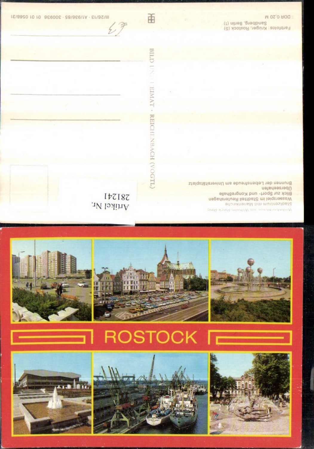 281241,Rostock Wohnhochhaus Marienkirche Wasserspiel Kongresshalle Überseehafen Brunnen Mehrbildkarte