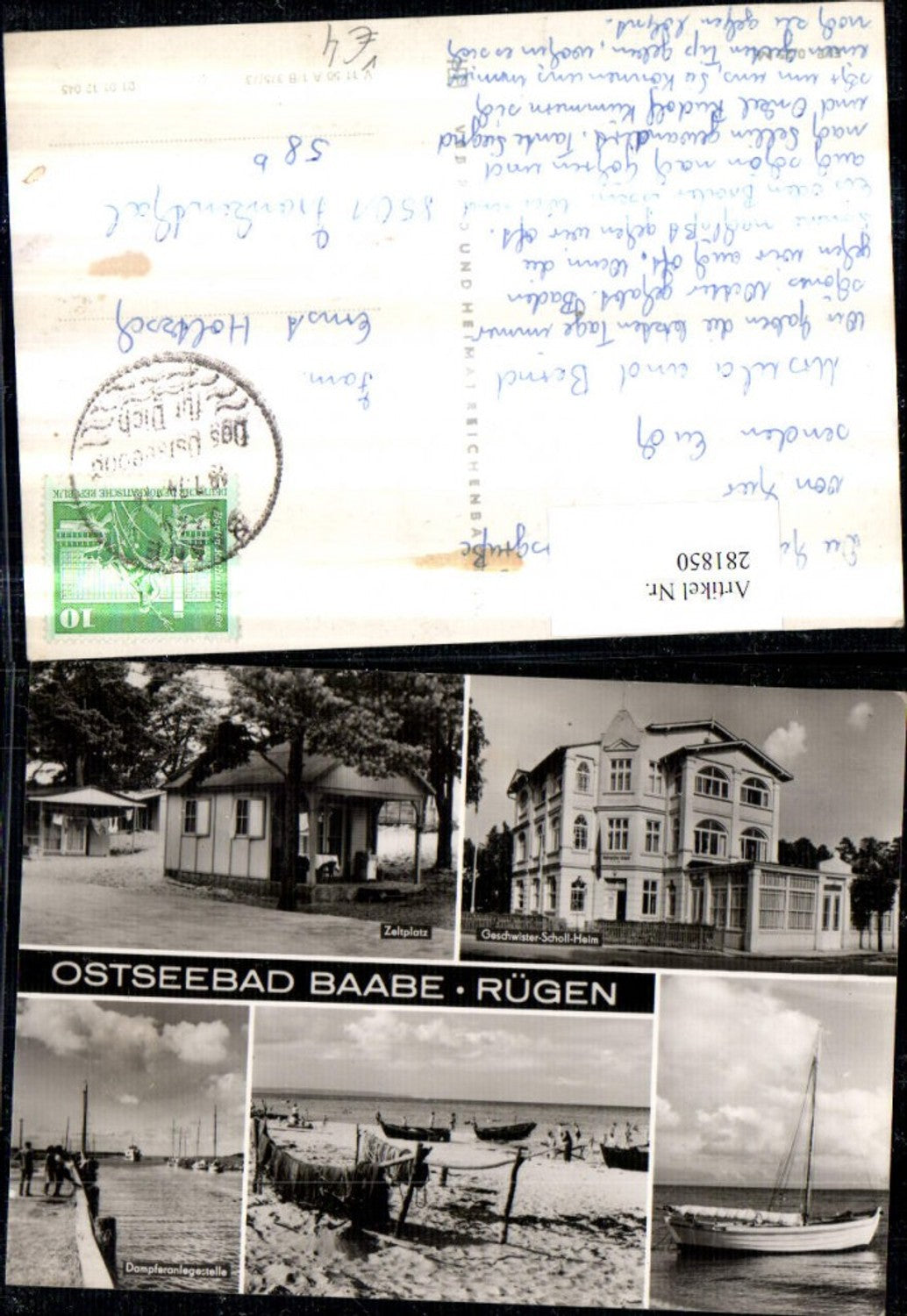 281850,Ostseebad Baabe auf Rügen Zeltplatz Geschwister-Scholl-Heim Anlegestelle Strand Mehrbildkarte pub VEB