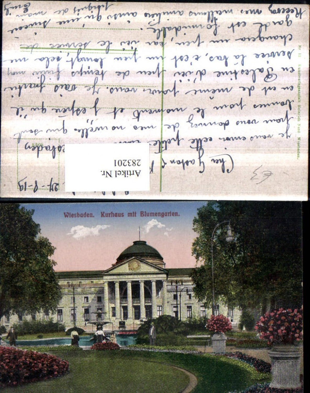 283201,Wiesbaden Kurhaus Gebäude m. Blumengarten Springbrunnen
