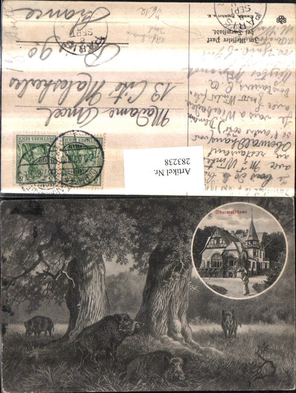 283238,Im Messeler Park b. Darmstadt Oberwaldhaus Wildschweine Jagd Mehrbildkarte
