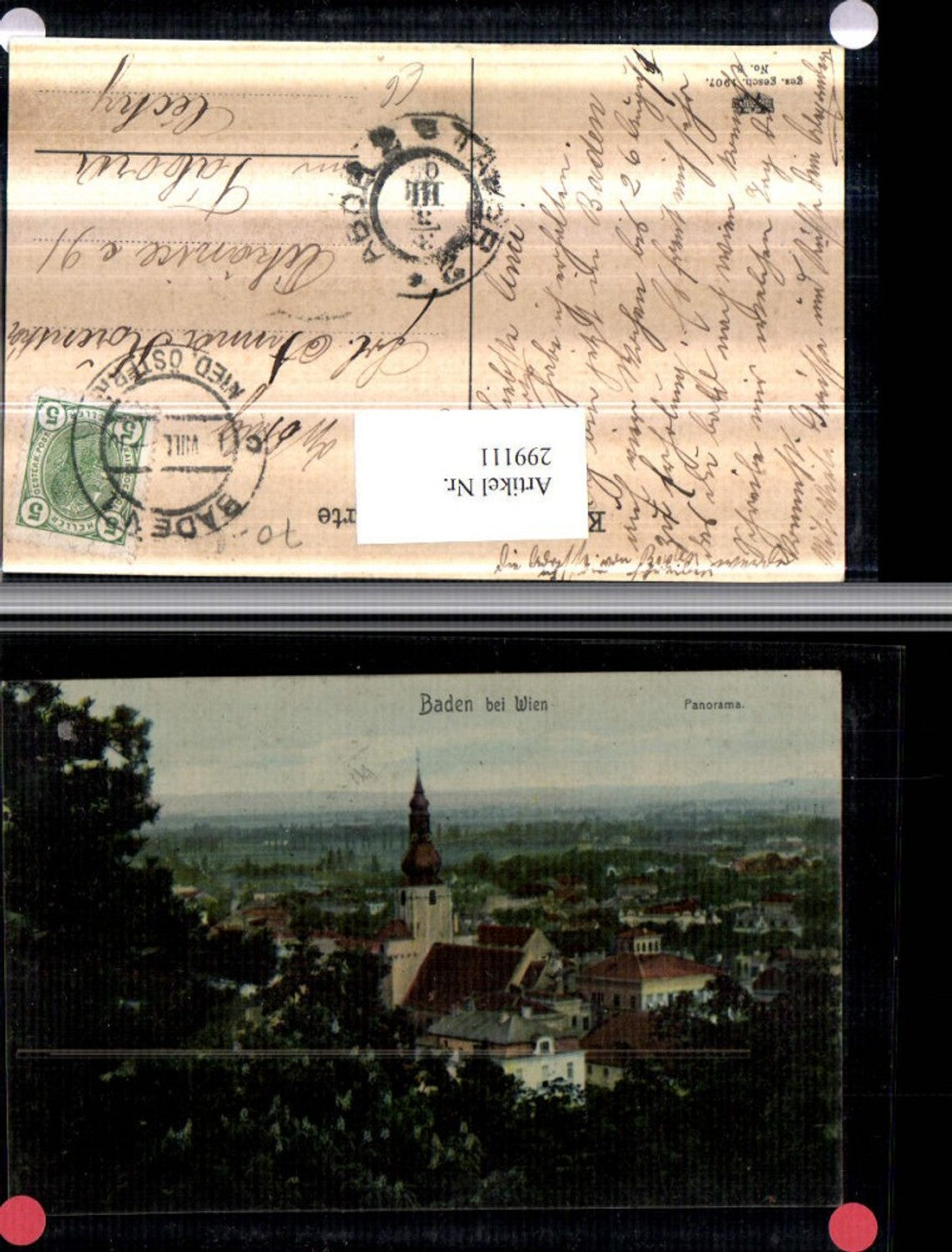 299111,Baden b. Wien Totale Panorama Kirche