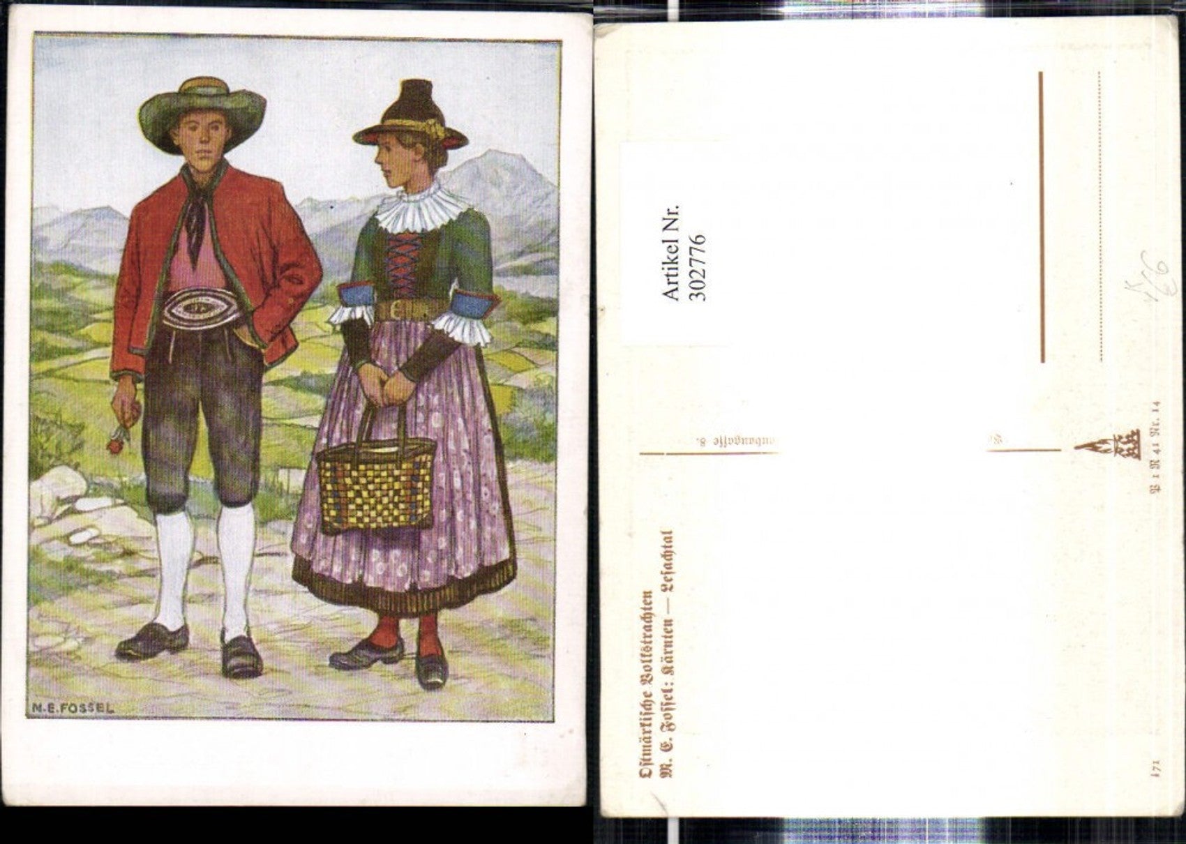 302776,VDA P. 1 R. 41 Nr. 14 Künstler Ak M. E. Fossel Kärnten Lesachtal Ostmärkische Volkstrachten Tracht Paar