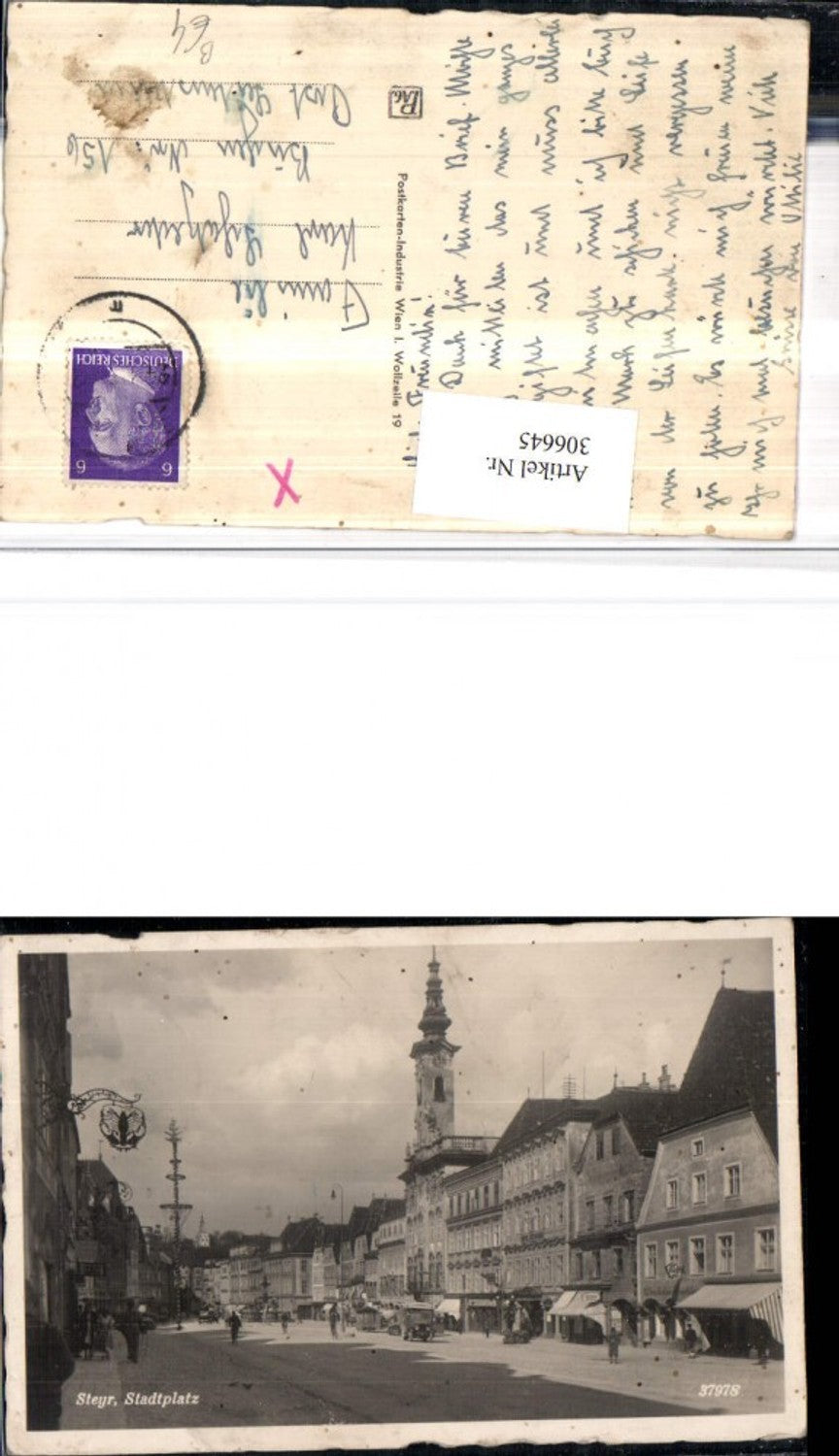 306645,Steyr an d. Enns Stadtplatz Straßenansicht Geschäfte Maibaum