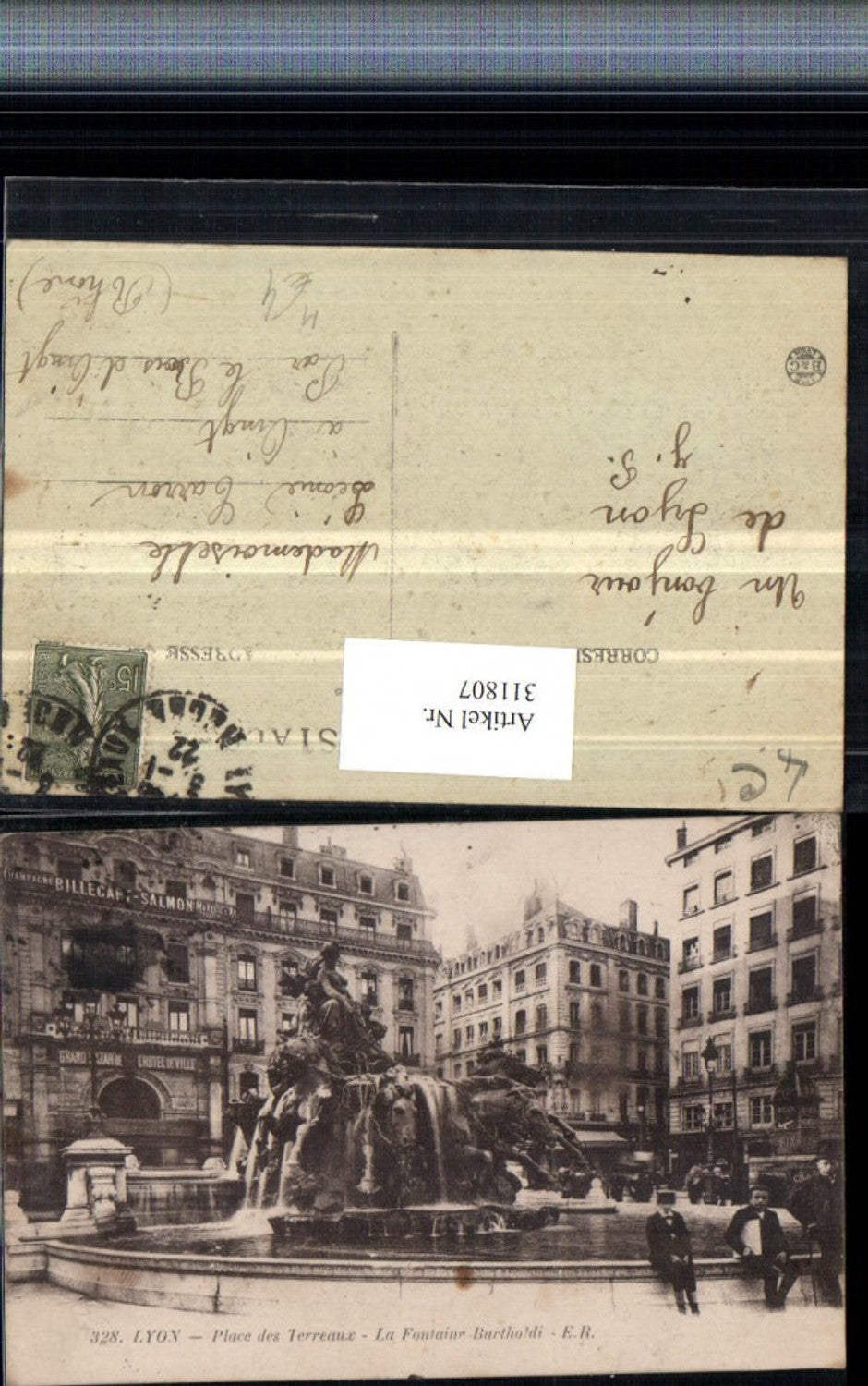 311807,Lyon Place des Terreaux La Fontaine Bartholdi Brunnen