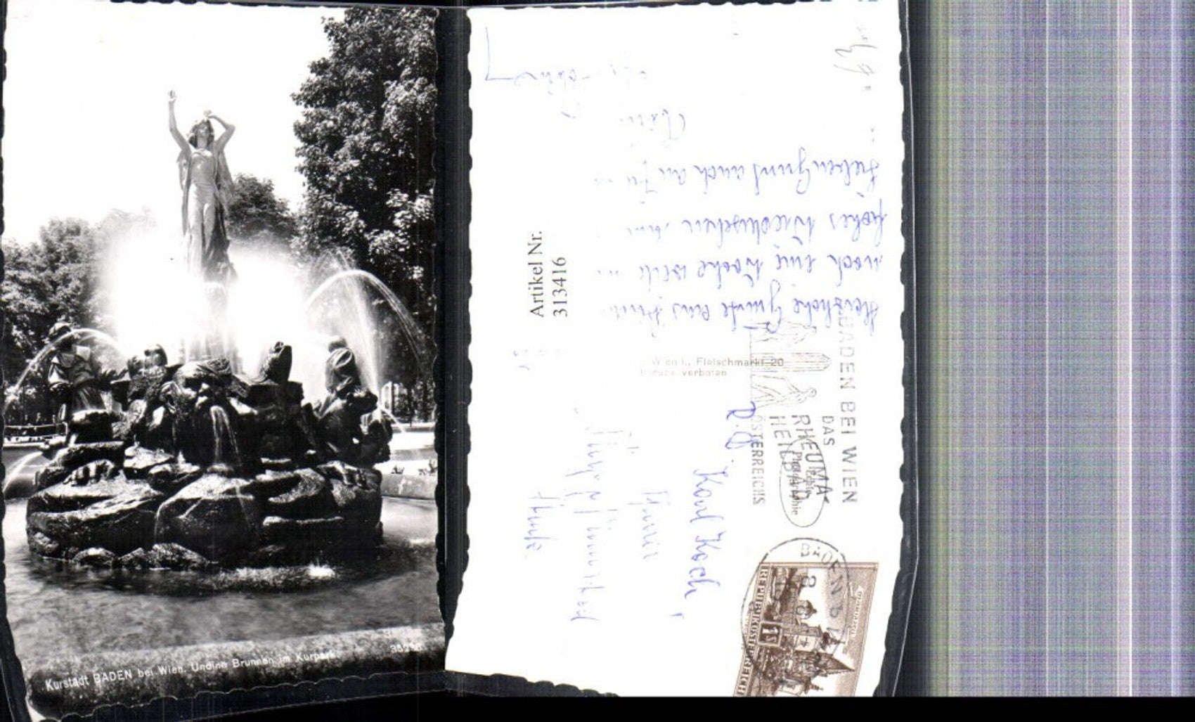 313416,Foto Ak Baden b. Wien Undine Brunnen i. Kurpark Springbrunnen