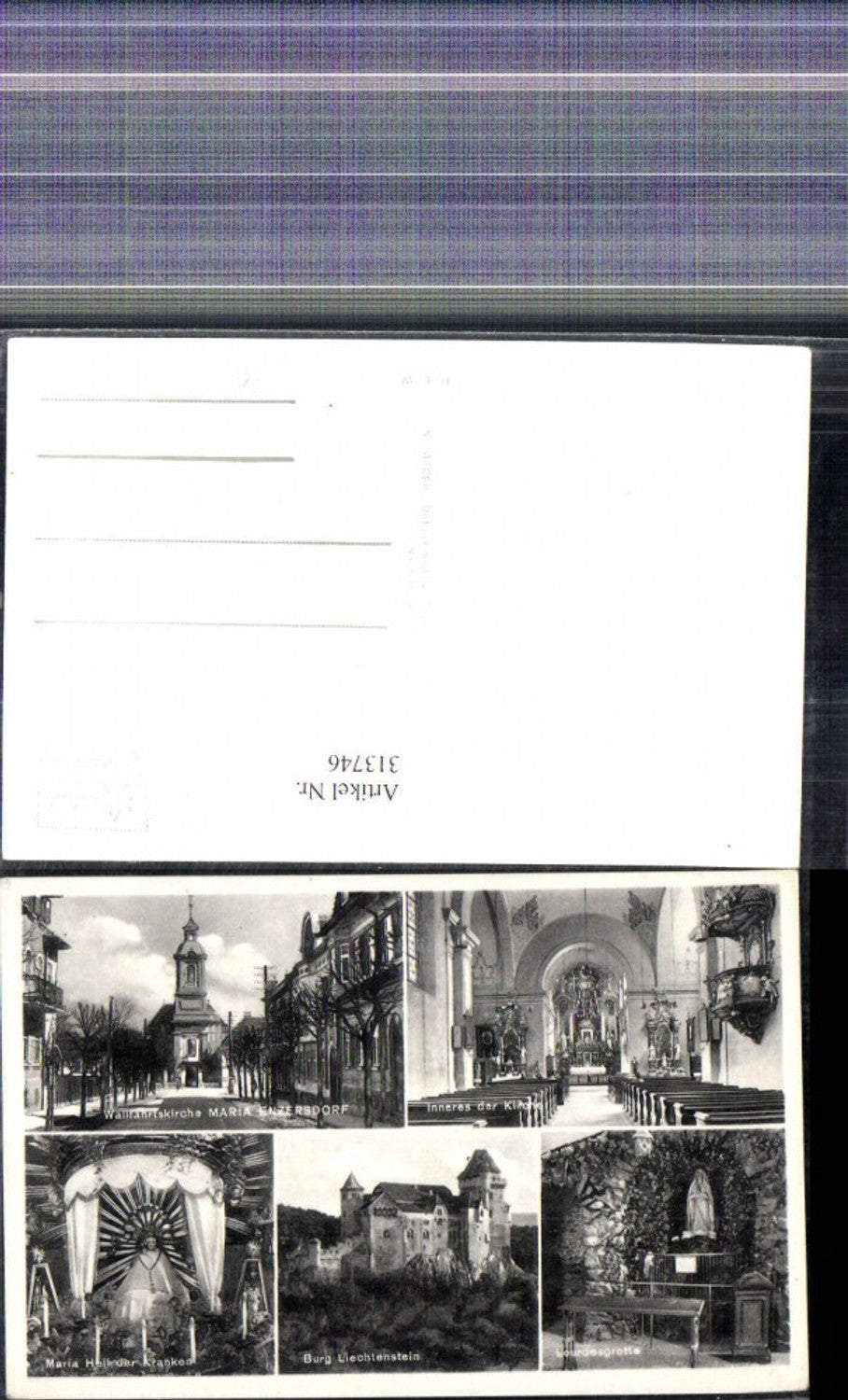 313746,Foto Mehrbild Ak Maria Enzersdorf Kirche Lourdesgrotte Burg Liechtenstein