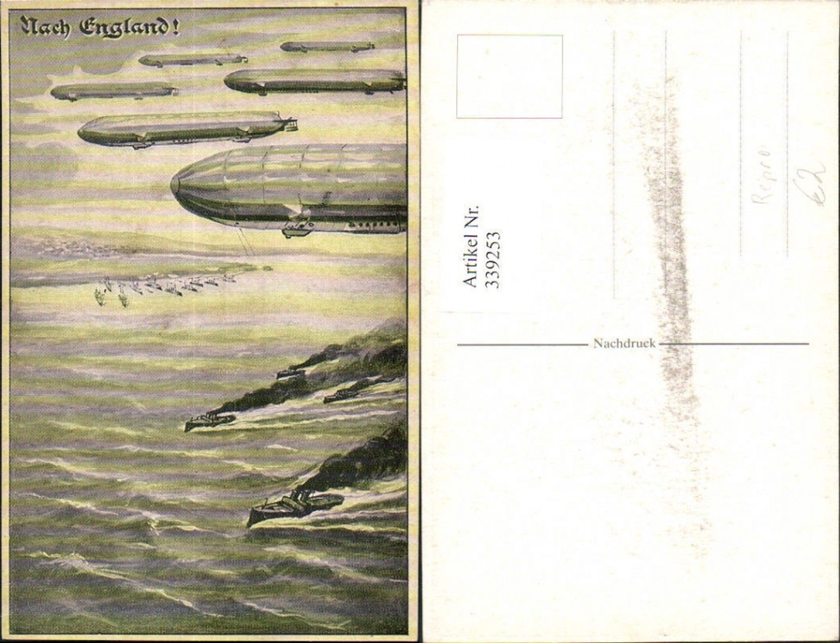 339253,Repro Künstler Ak WW1 Luftschiffe Schiffe Nach England Technik