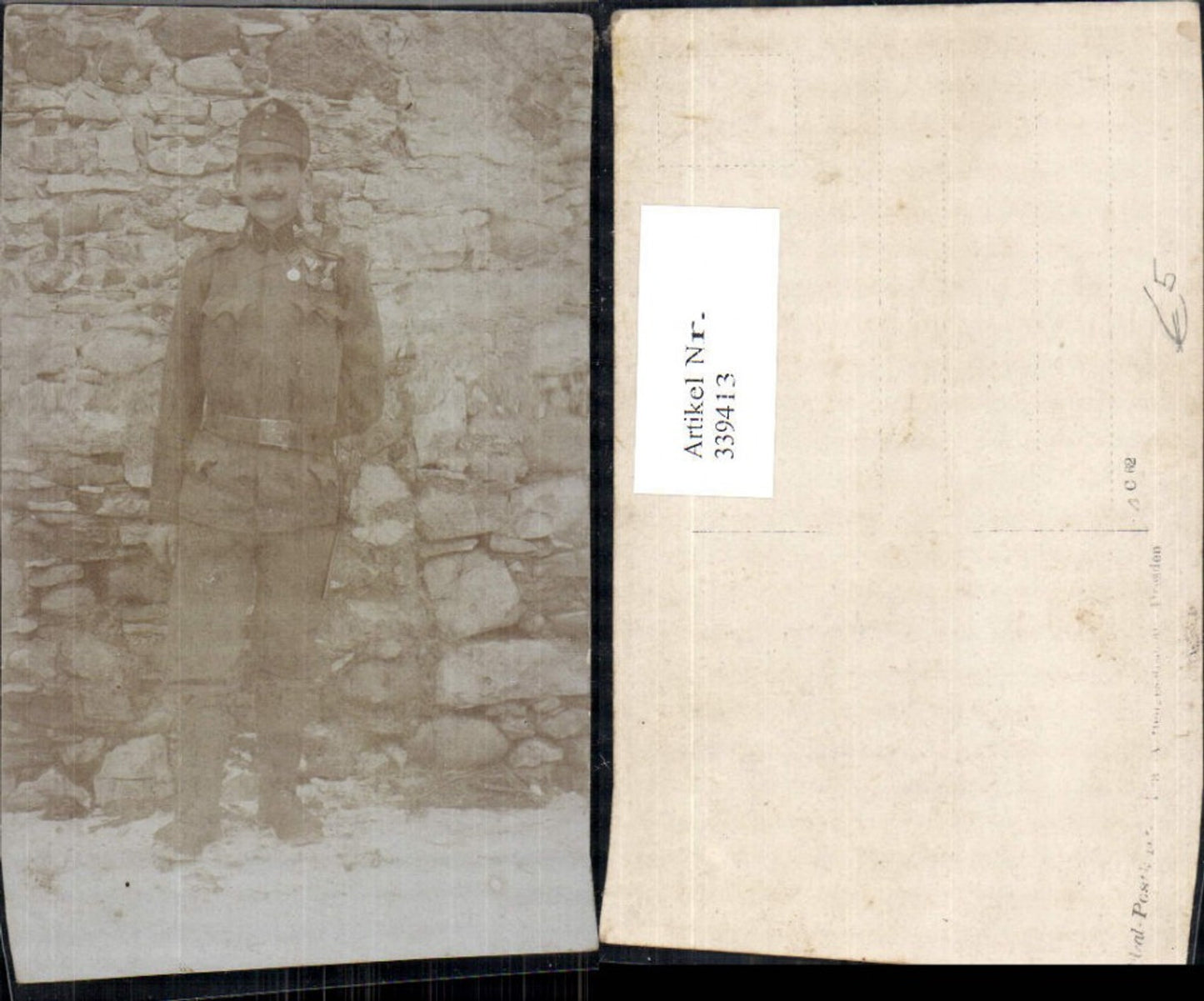 339413,Foto Ak WW1 Soldat Uniform Orden Kampfmesser