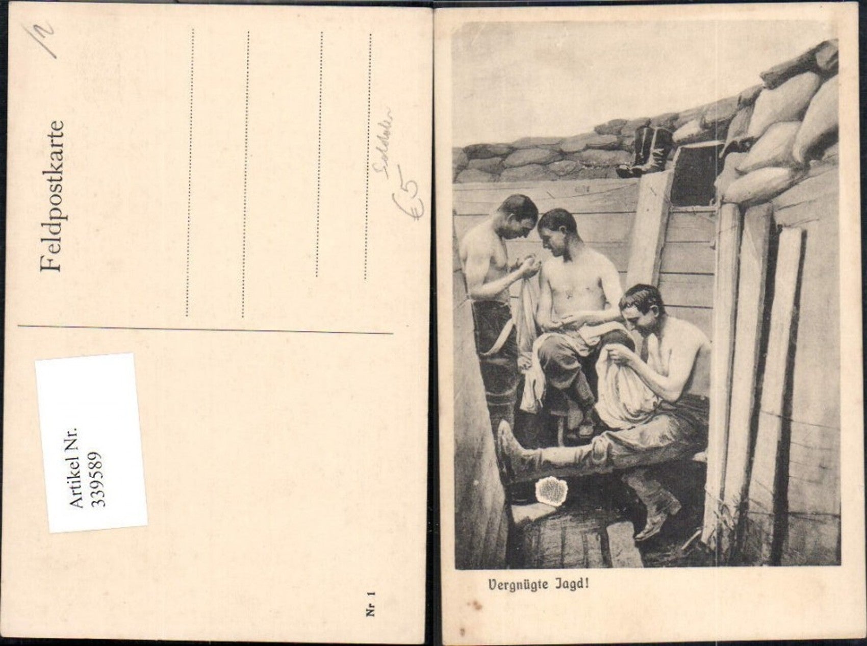339589,WW1 Soldatenleben Vergnügte Jagd Soldaten Kleidung Suche n. Läuse Ungeziefer