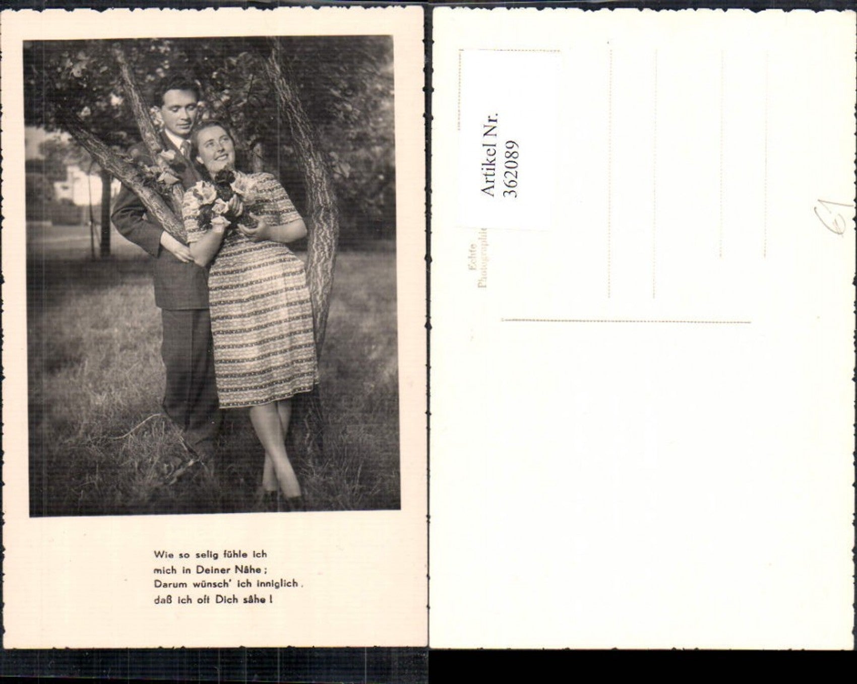 362089,Foto Ak Liebe Paar Verliebte Blick b. Baum Blumen Strauß Spruch Text