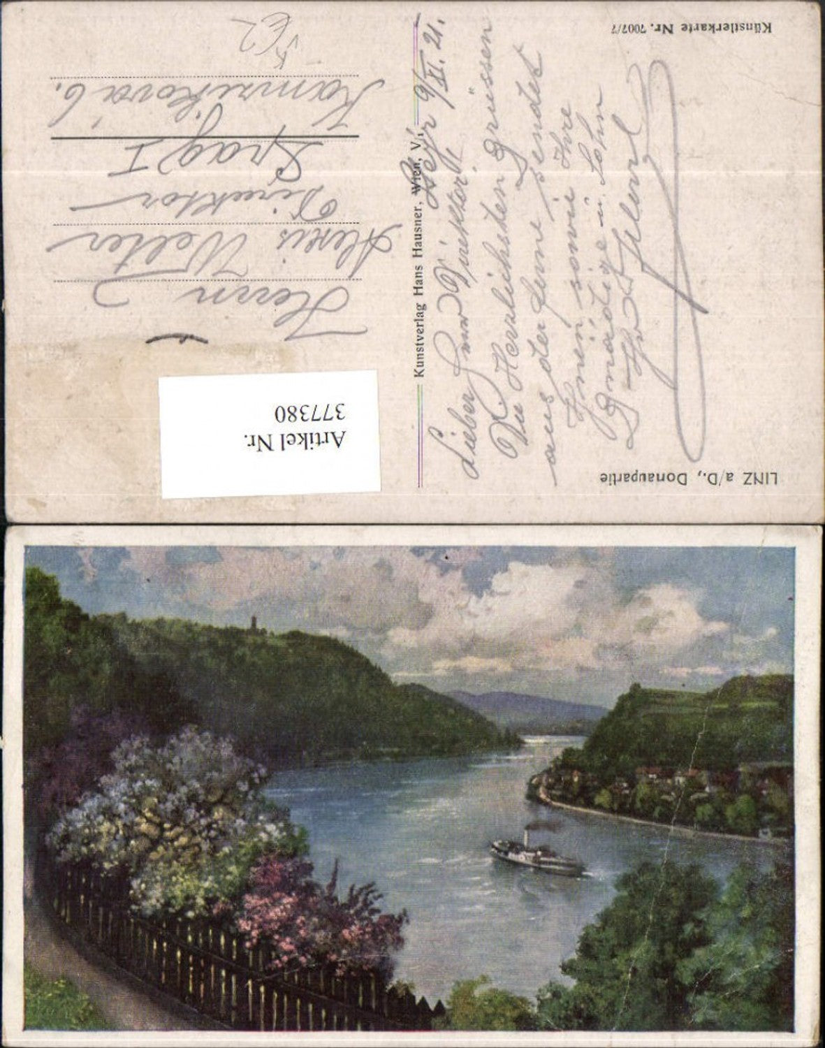 377380,Künstler AK Linz an d. Donau Fluss Dampfer pub Hans Hausner 7007/7