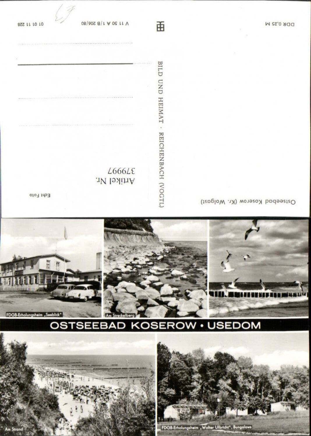 379997,Koserow auf Usedom Strand Küste Streckelberg Möwen Erholungsheime Mehrbildkarte