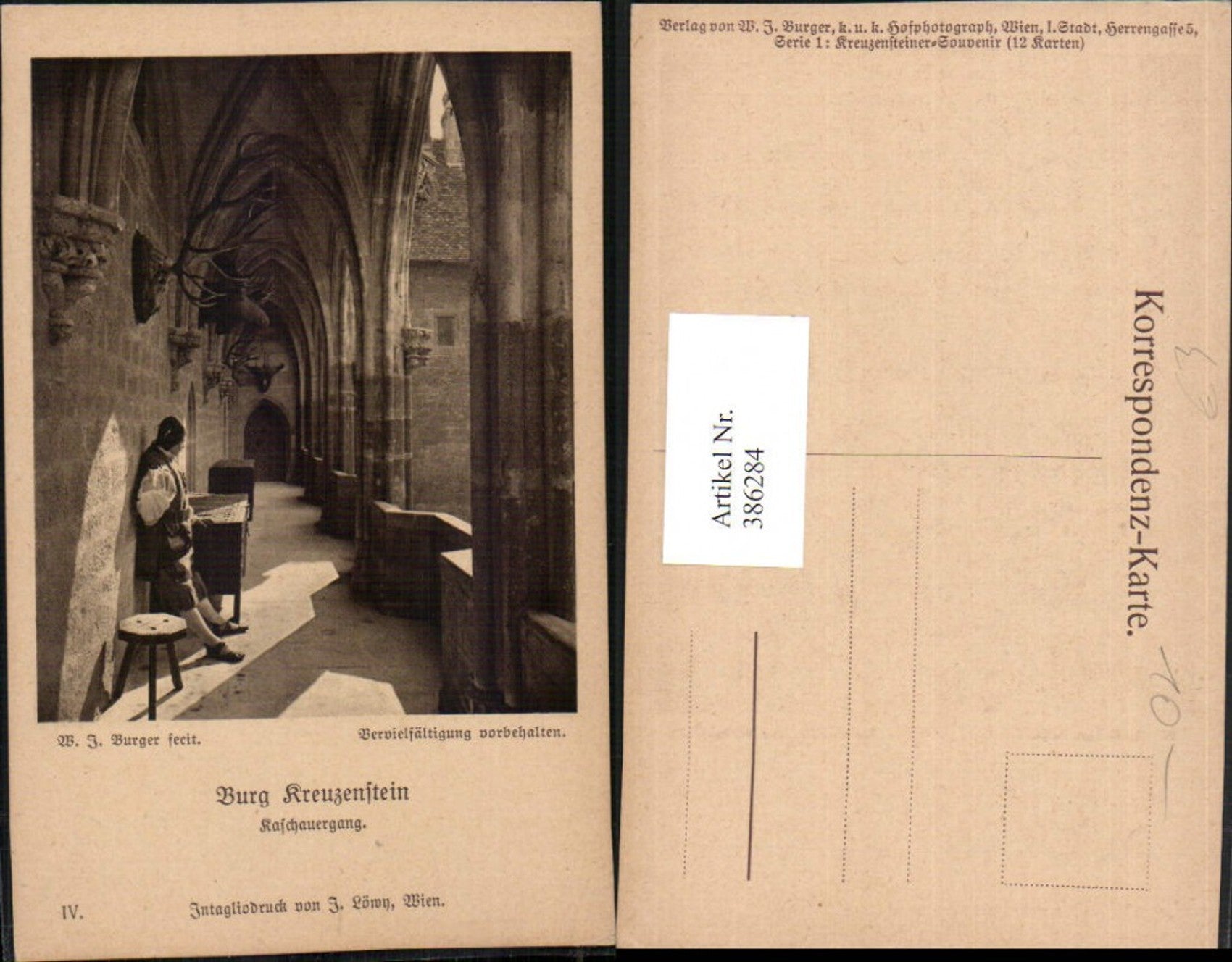386284,Künstler AK W. J. Burger Burg Kreuzenstein b. Leobendorf Kaschauergang Gang