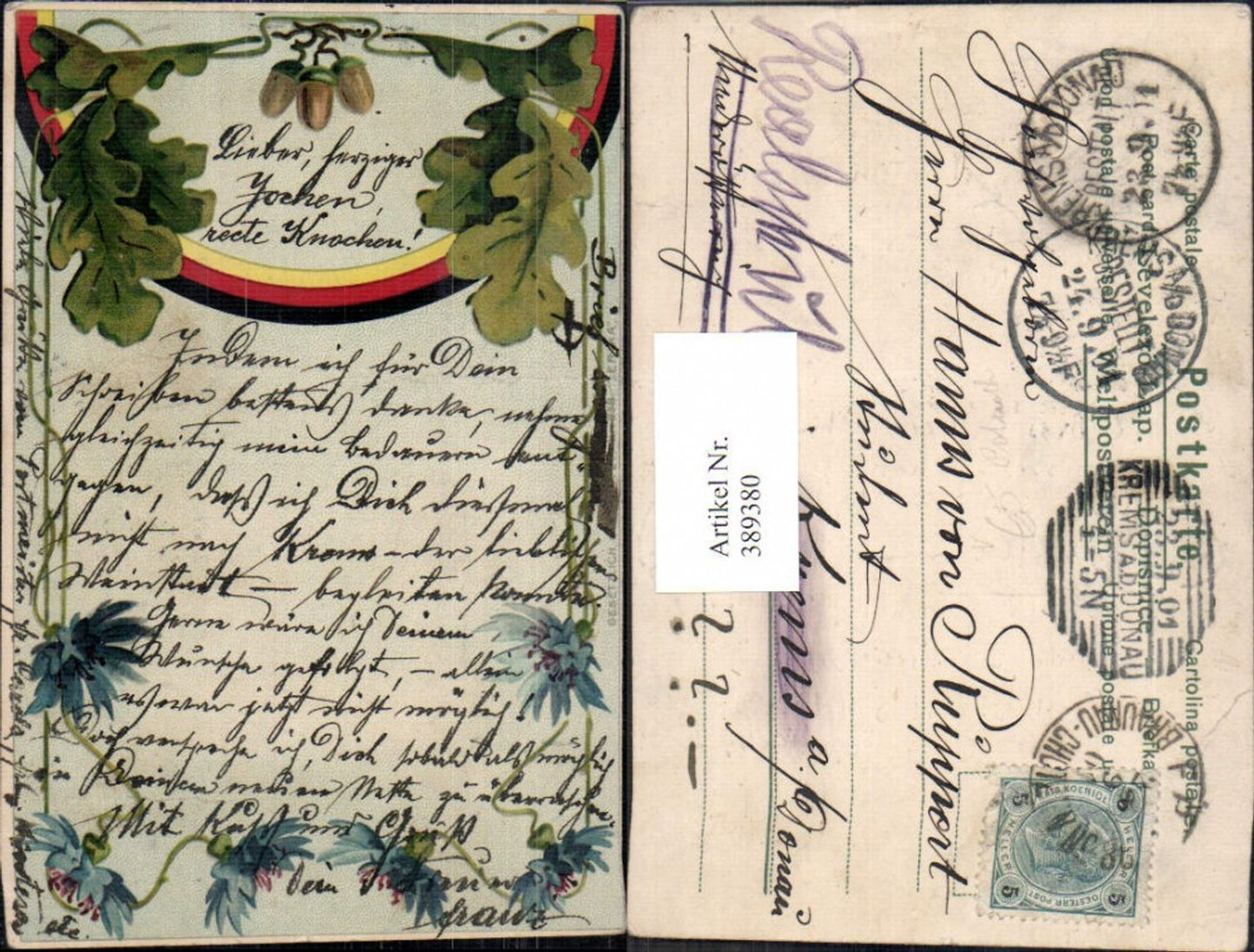 389380,WW1 Eichenblätter Eiche Eicheln Schleife Deutschland Patriotik Propaganda pub Erika
