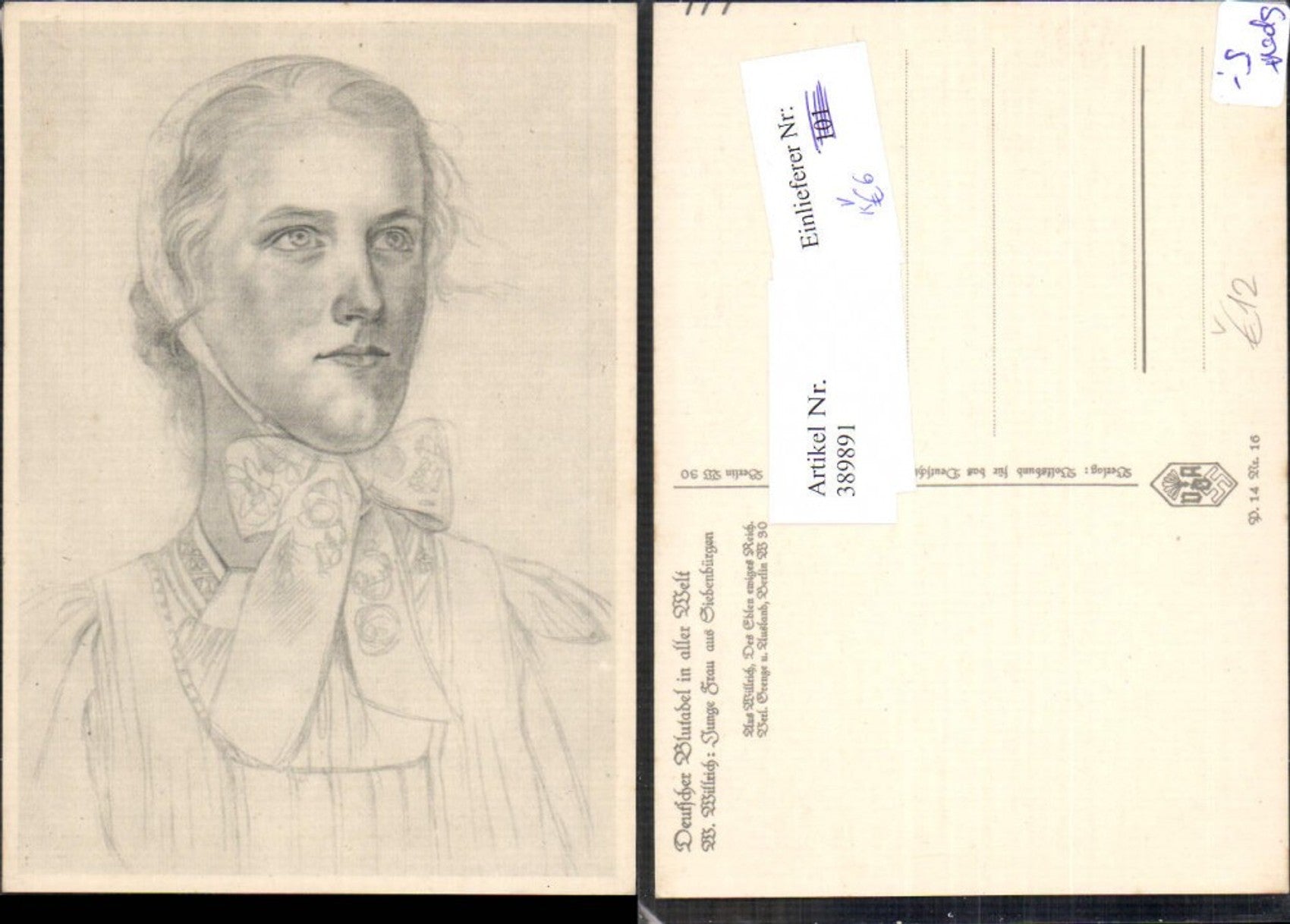 389891,WW2 VDA P. 14 Nr. 16 W. Willrich Junge Frau a. Siebenbürgen