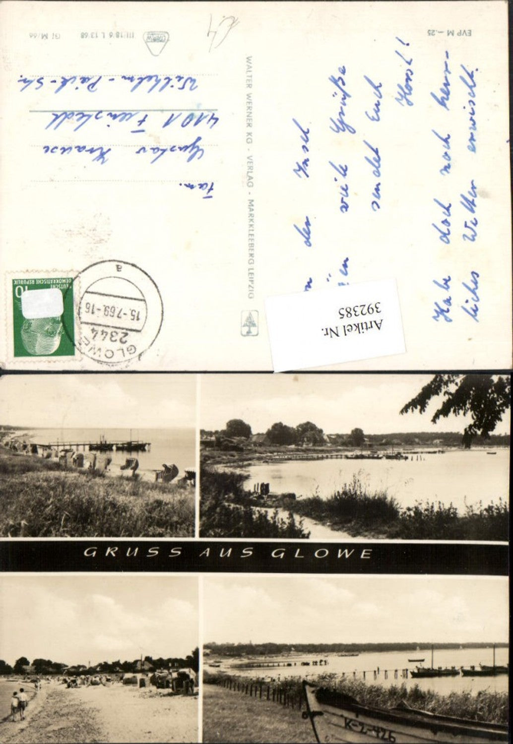 392385,Gruß aus Glowe Strand Strandleben Steg Boote Mehrbildkarte