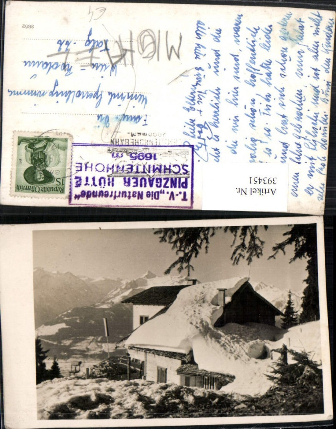 393451,Foto AK Pinzgauer-Hütte Berghütte b. Zell am See Bergkulisse Winterbild