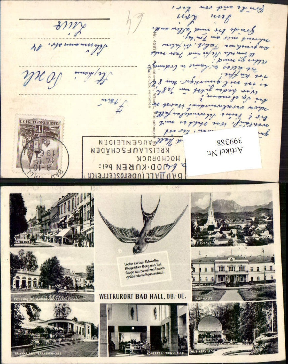 399388,Bad Hall Totale Kurhaus Hauptplatz Mehrbildkarte Schwalbe Spruch