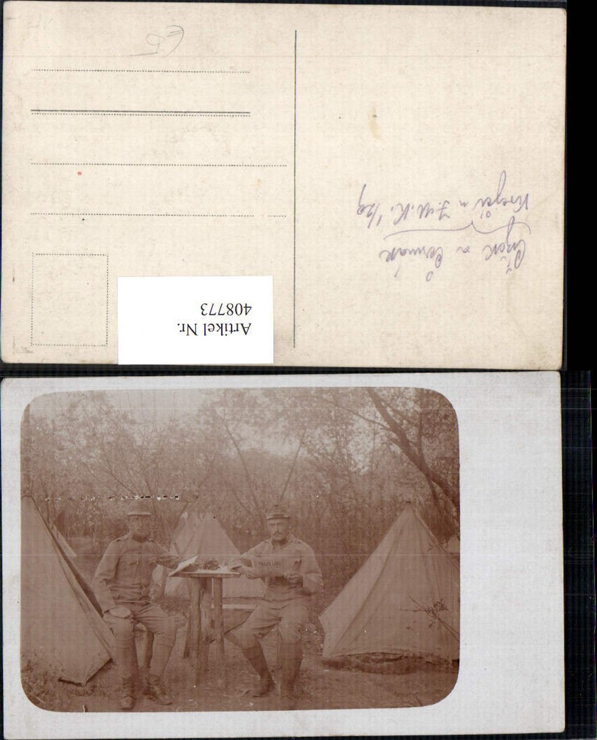 408773,Foto Ak WW1 Soldaten Uniformen Zeltlager Zelte Zeitung Lesen