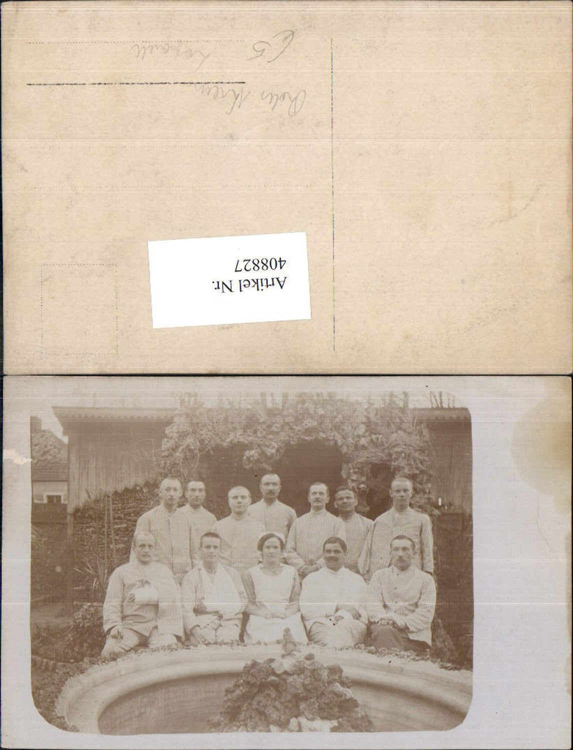 408827,Foto Ak WW1 Gruppenbild Verletzte Krankenschwester Rotes Kreuz Lazarett Brunnen