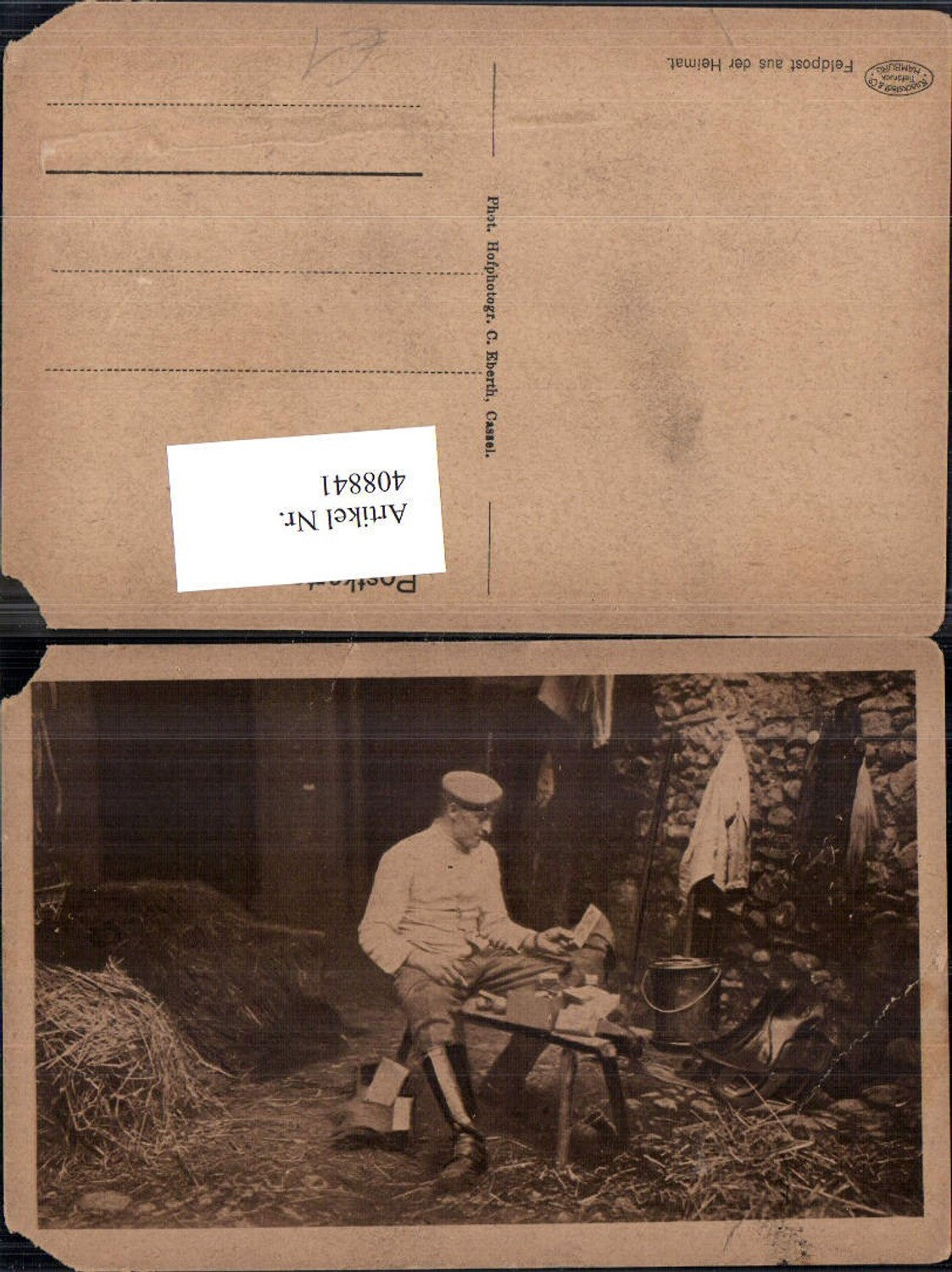 408841,WW1 Soldat Rauchen Stall Sattel Soldatenleben