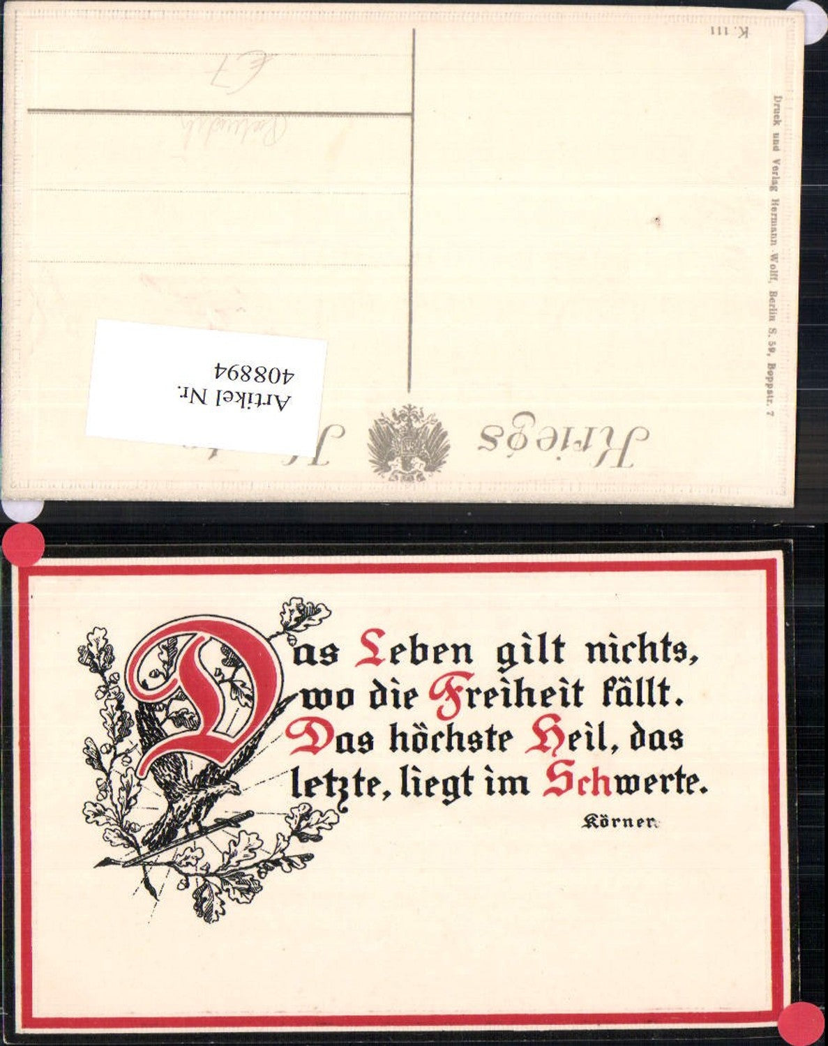 408894,Präge Ak WW1 Körner Adel Text Patriotik Propaganda