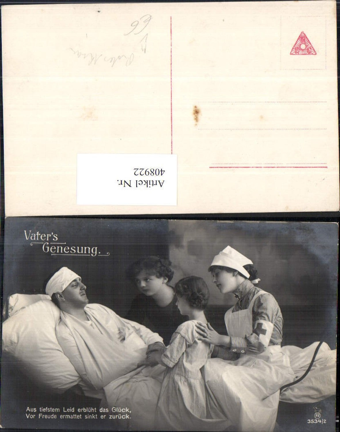 408922,WW1 Vaters Genesung Verwundeter m. Krankenschwester Kinder Rotes Kreuz pub RPH 3534/2