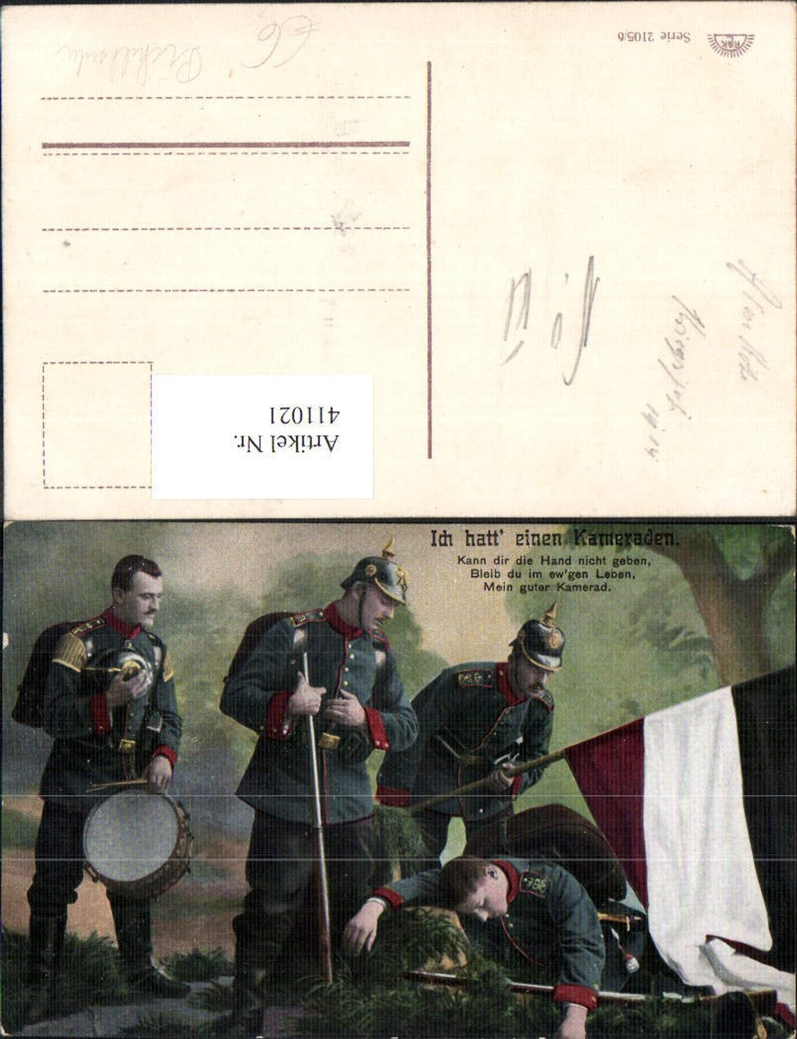 411021,WW1 Soldaten Uniform Ich hatt einen Kameraden Trommel Pickelhaube Fahne