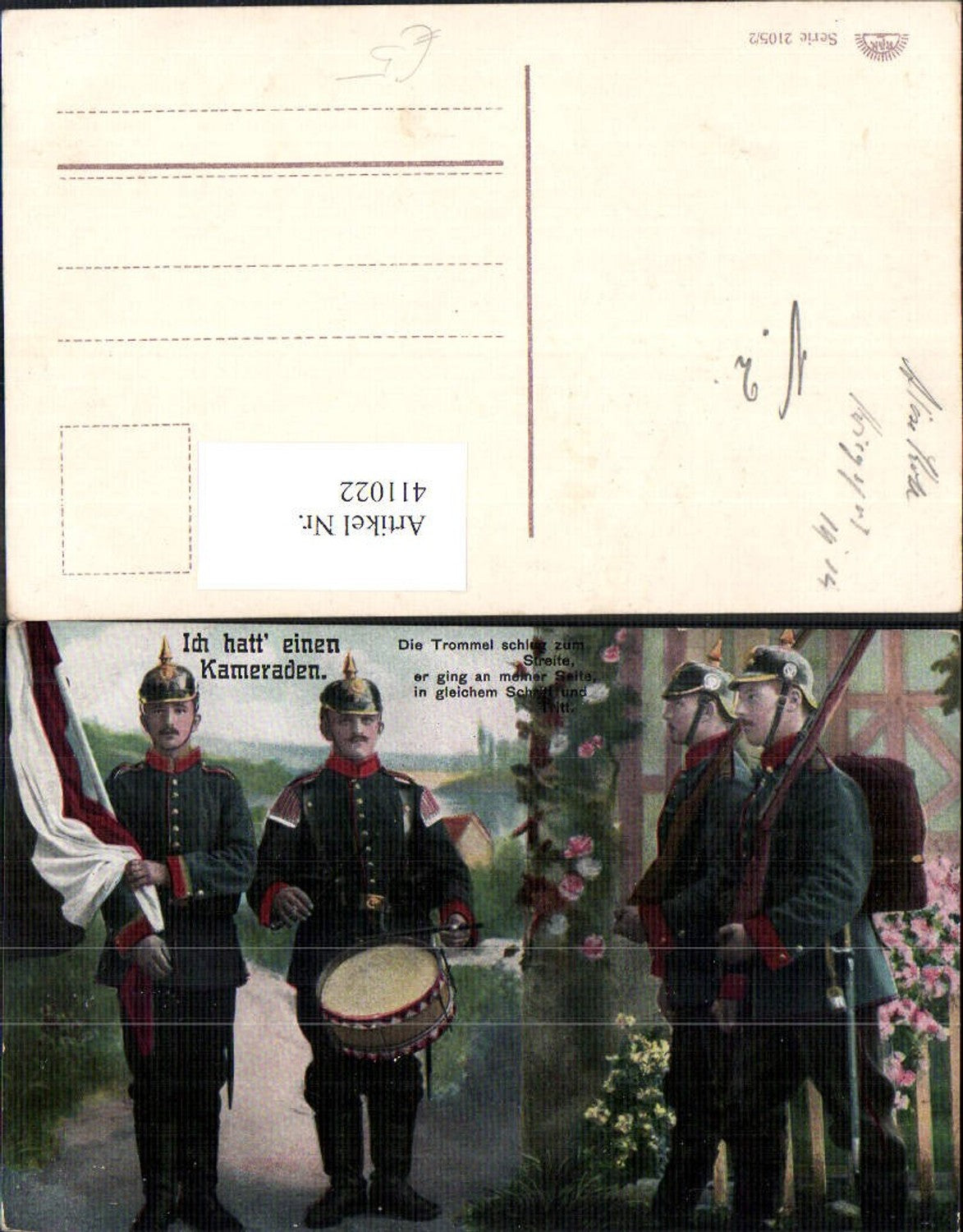411022,WW1 Soldaten Uniform Ich hatt einen Kameraden Trommel Pickelhaube Fahne