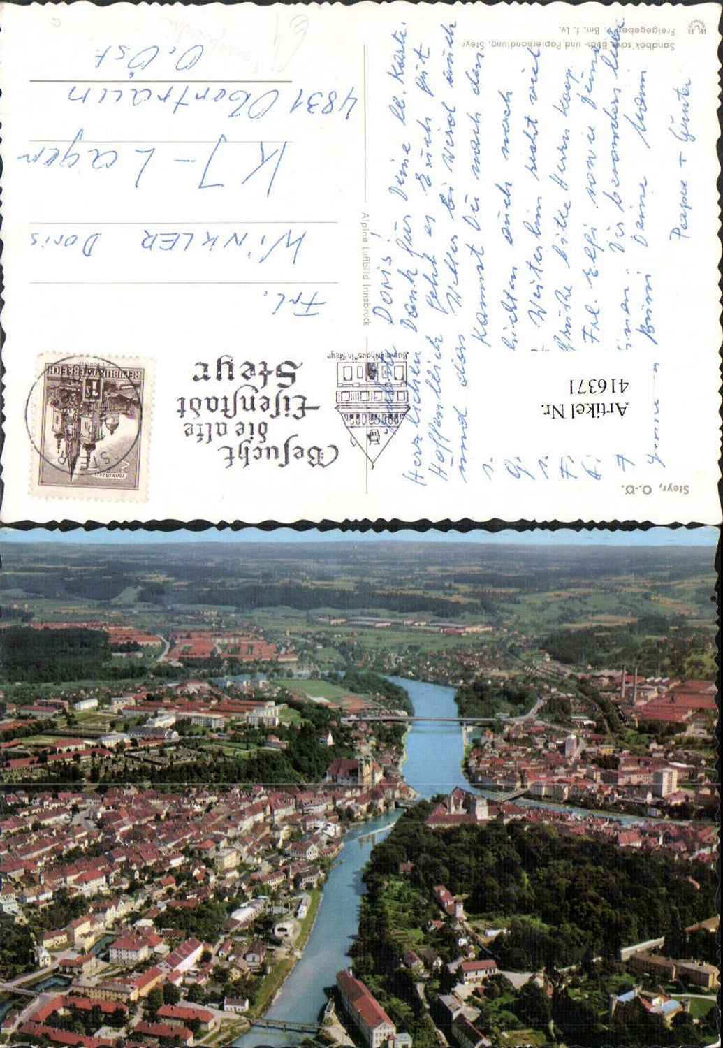 416371,Steyr an d. Enns Totale Fliegeraufnahme