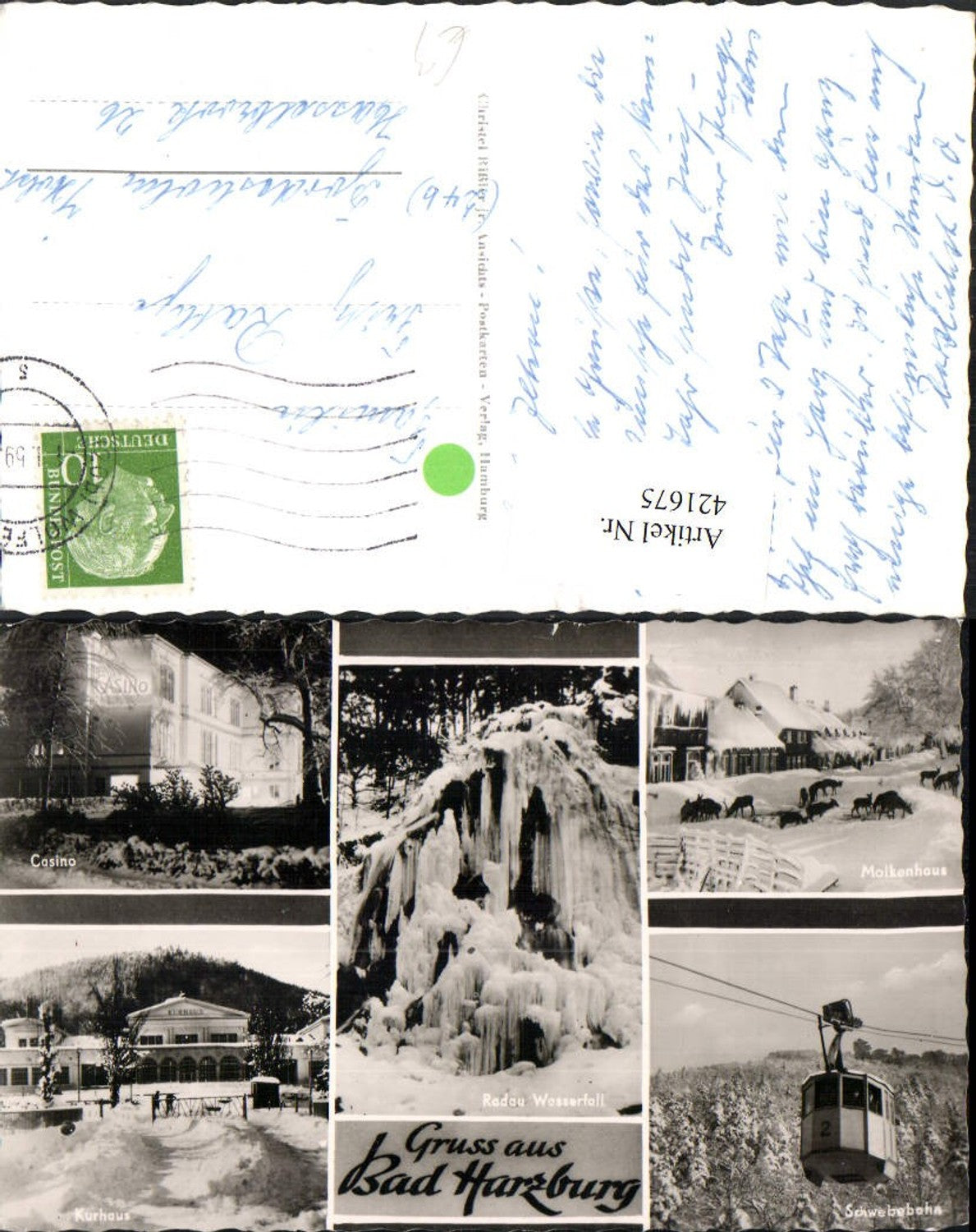421675,Bad Harzburg Casino Kurhaus Seilbahn Wasserfall Winterbilder Mehrbildkarte
