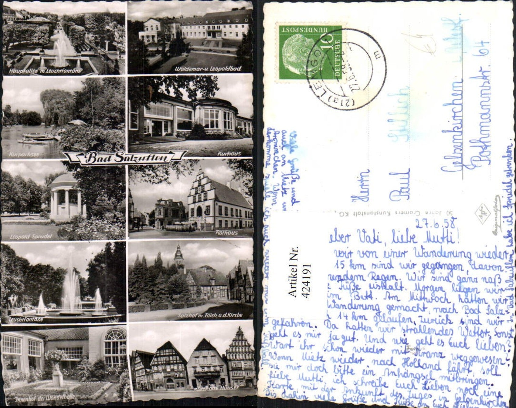 424191,Bad Salzuflen Kurhaus Rathaus Brunnen Sprudel Mehrbildkarte