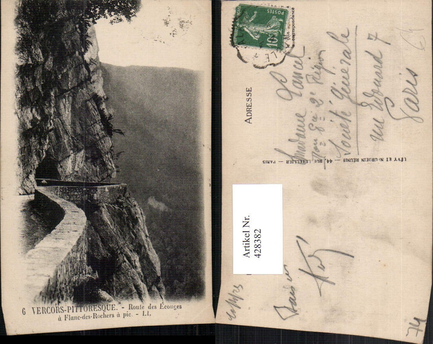 428382,Rhone-Alpes Haute-Savoie Vercors Route des Ecouges a Flanc-des-Rochers a pic Straße
