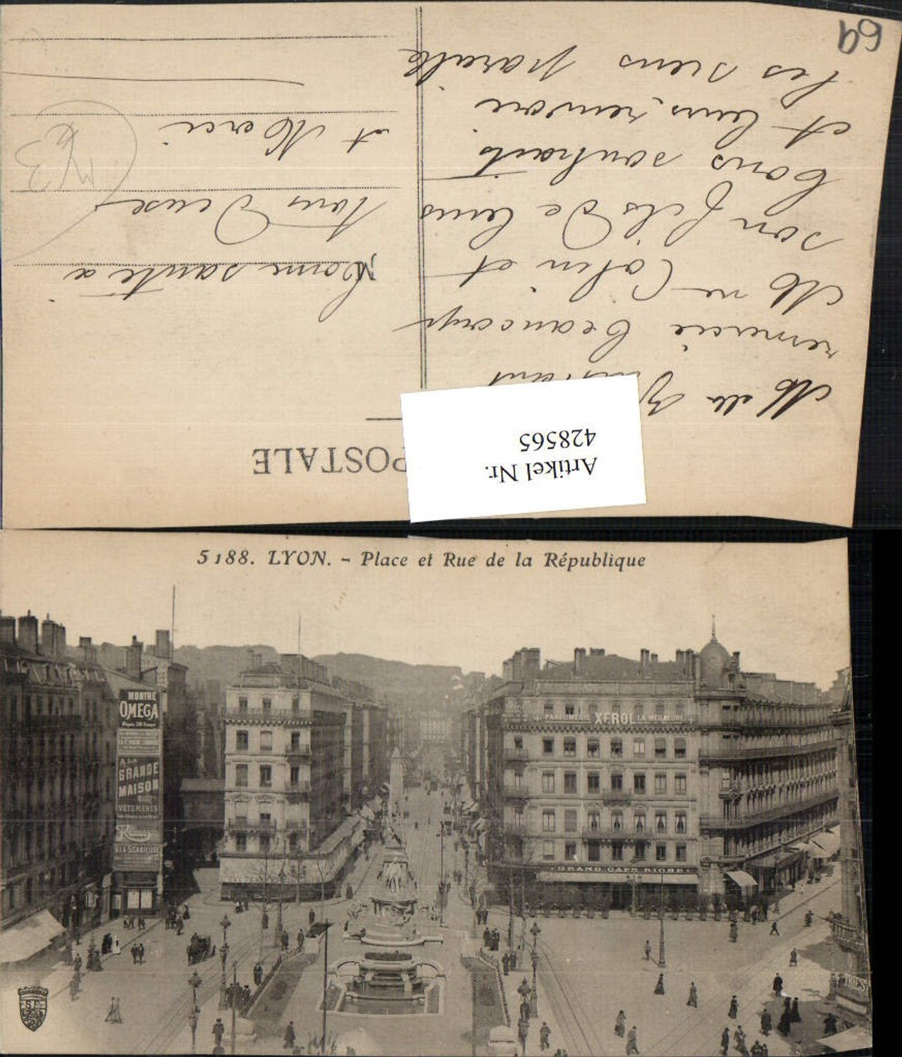 428565,Rhone-Alpes Rhone Lyon Place et Rue de la Republique Platz Obelisk