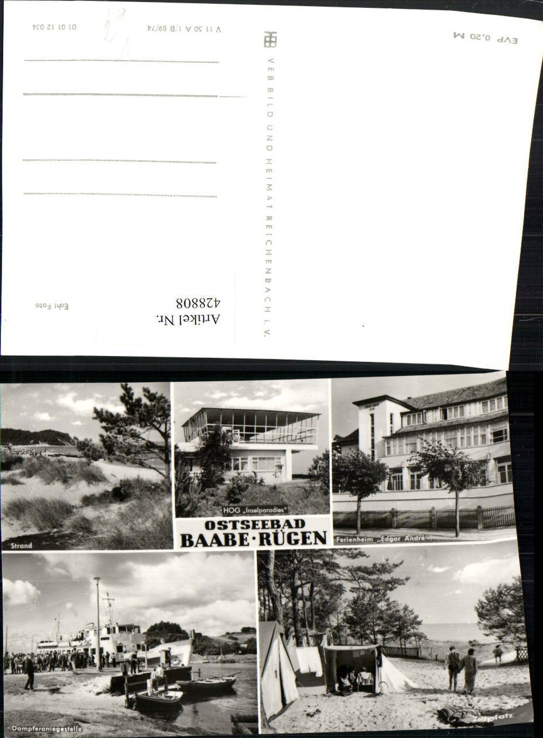 428808,Ostseebad Baabe auf Rügen Strand Dampfer Zeltplatz Mehrbildkarte pub VEB