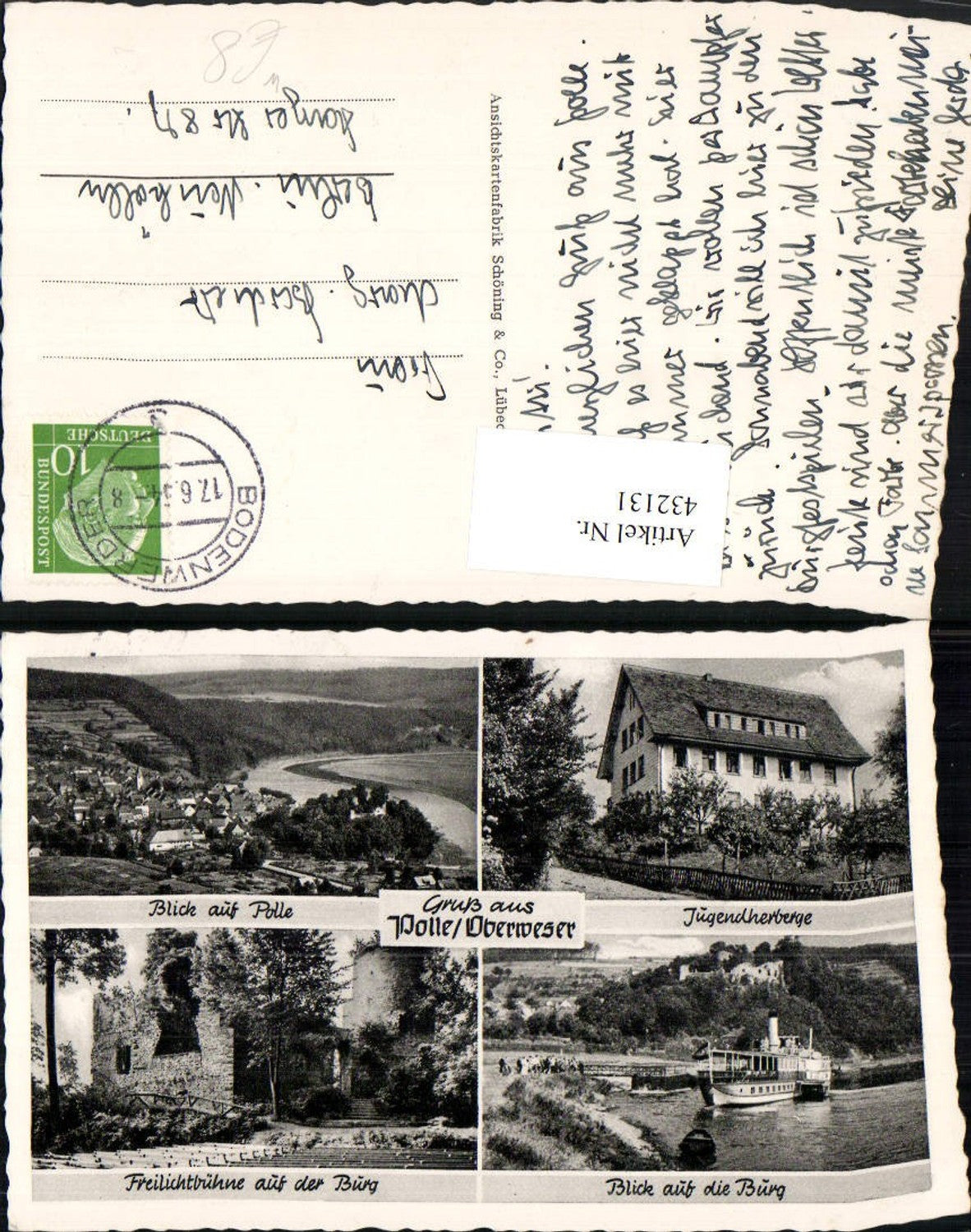 432131,Polle an d. Oberweser Totale Jugendherberge Burg Dampfer Mehrbildkarte