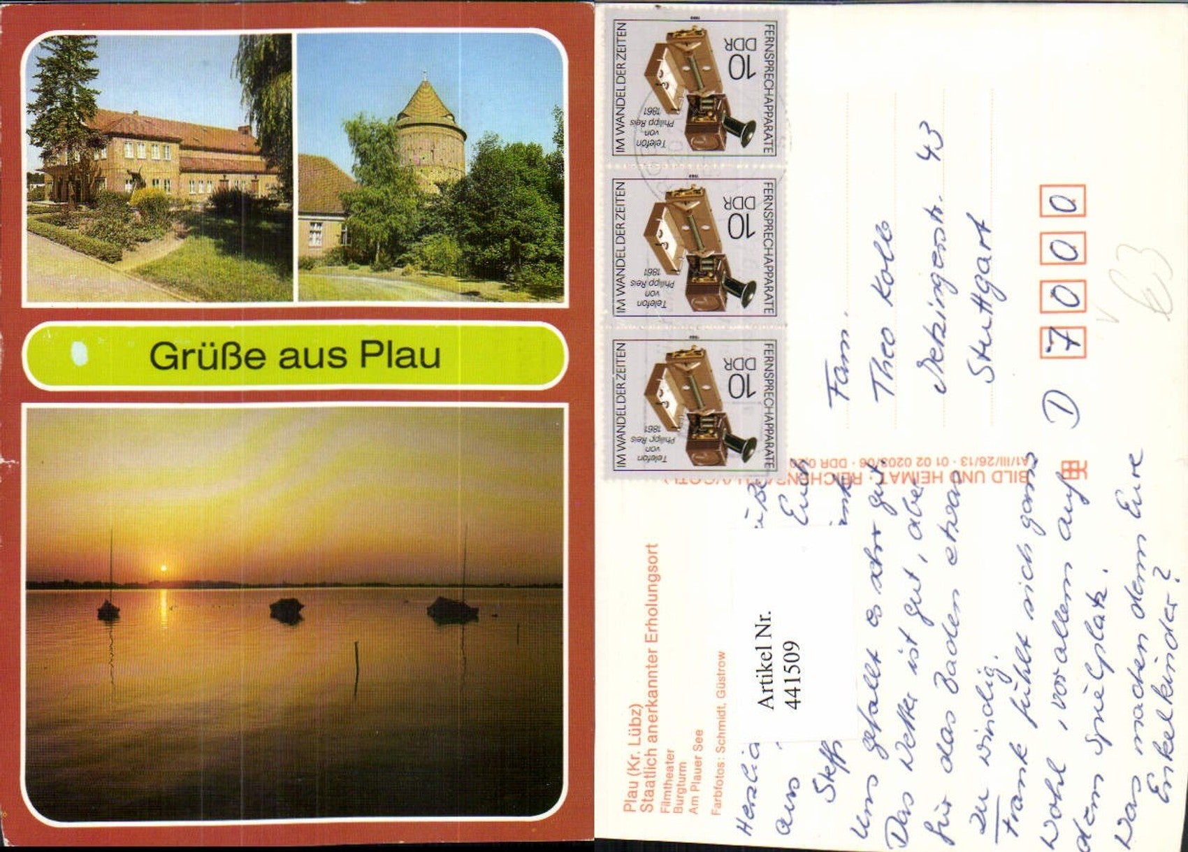 441509,Gruß aus Plau Filmtheater Burgturm See Mehrbildkarte pub VEB