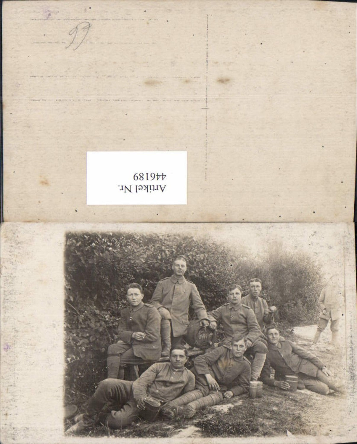 446189,Foto Ak WW1 Soldaten Uniform Rauchen Feldflasche Fass