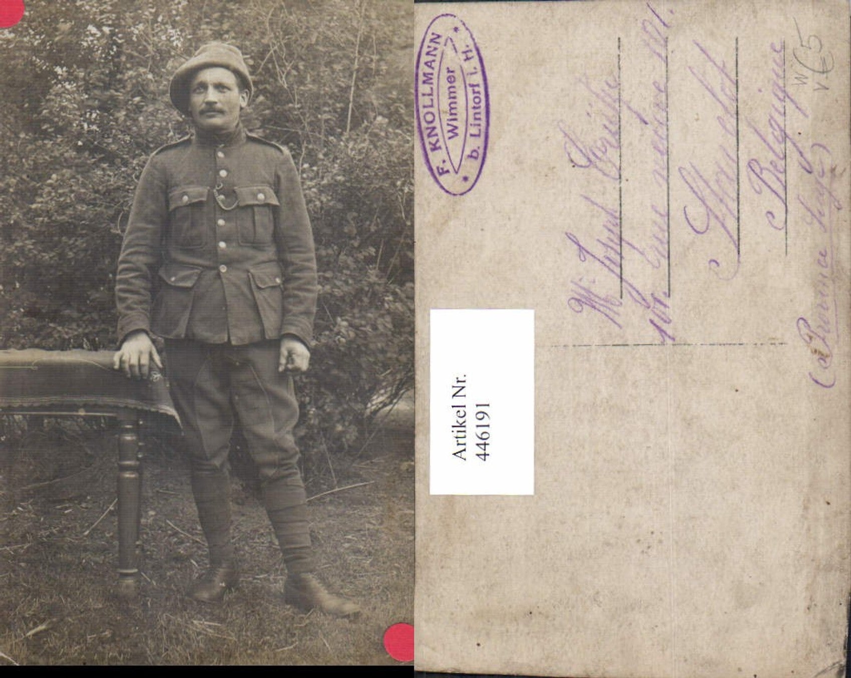 446191,Foto Ak WW1 Soldat Uniform Portrait pub F. Knollmann Wimmer b. Lintorf i. H.