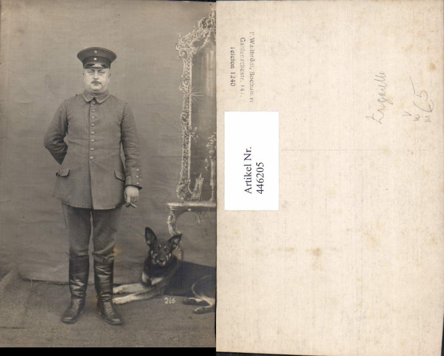 446205,WW1 Soldat Uniform Rauchen Hund Schäferhund pub F.Wallbröhl Bochum